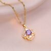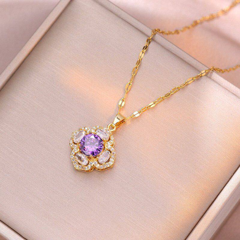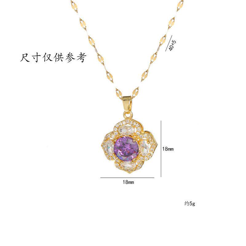 项链女 日韩风网红紫色锆石花朵小众新款设计感吊坠气质钛钢项链