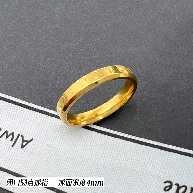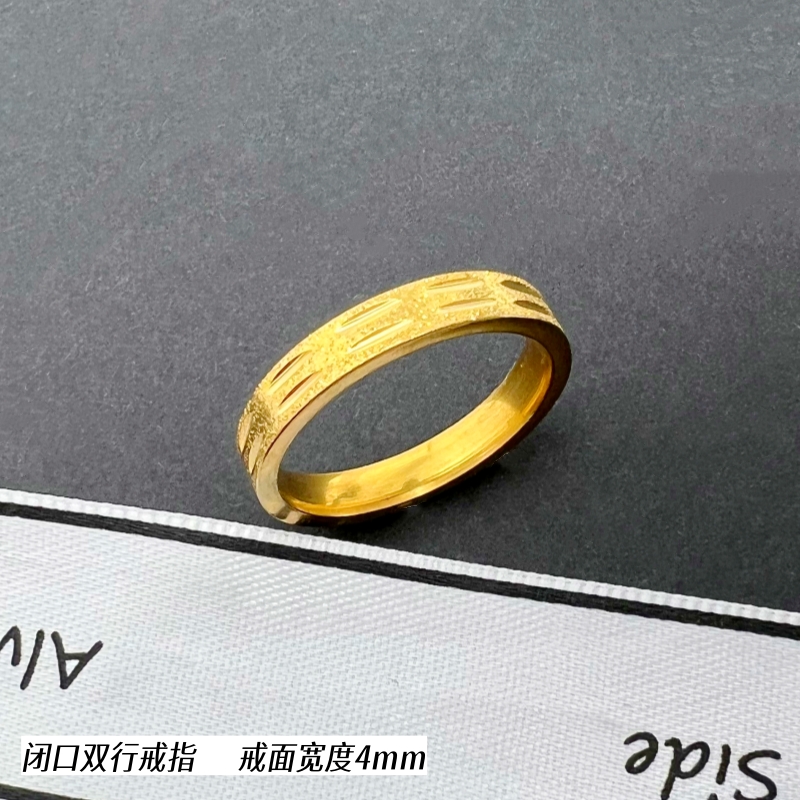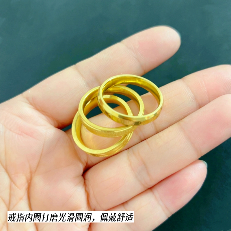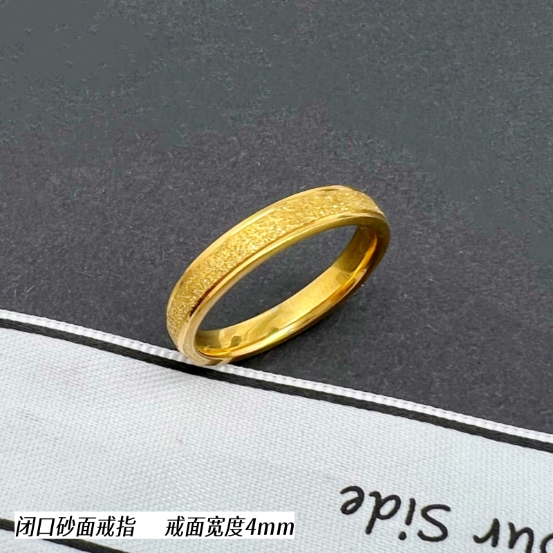正品沙金闭口指环黄铜镀金潮男女戒指情侣对戒钛钢简约久不掉色