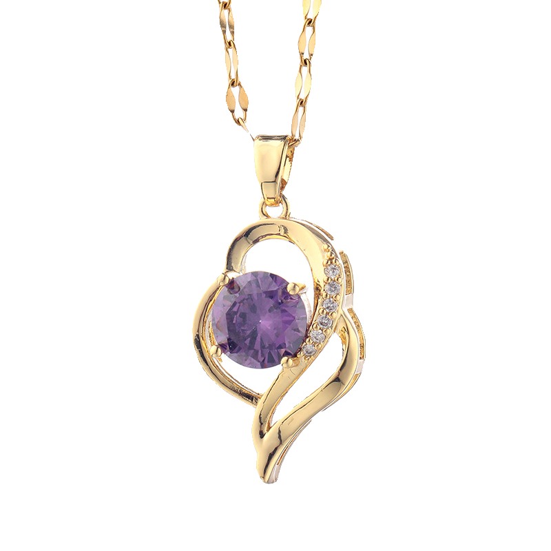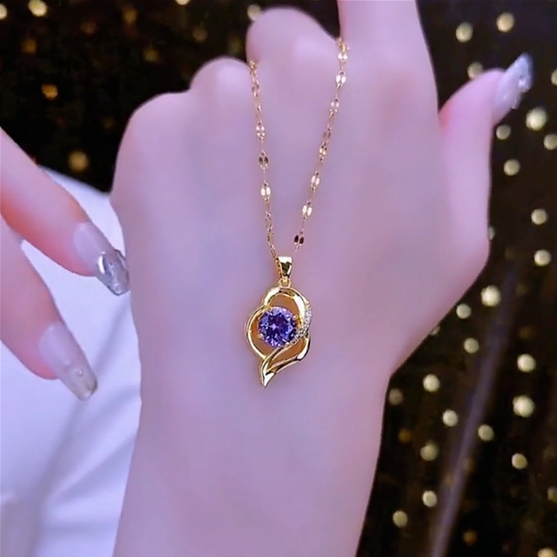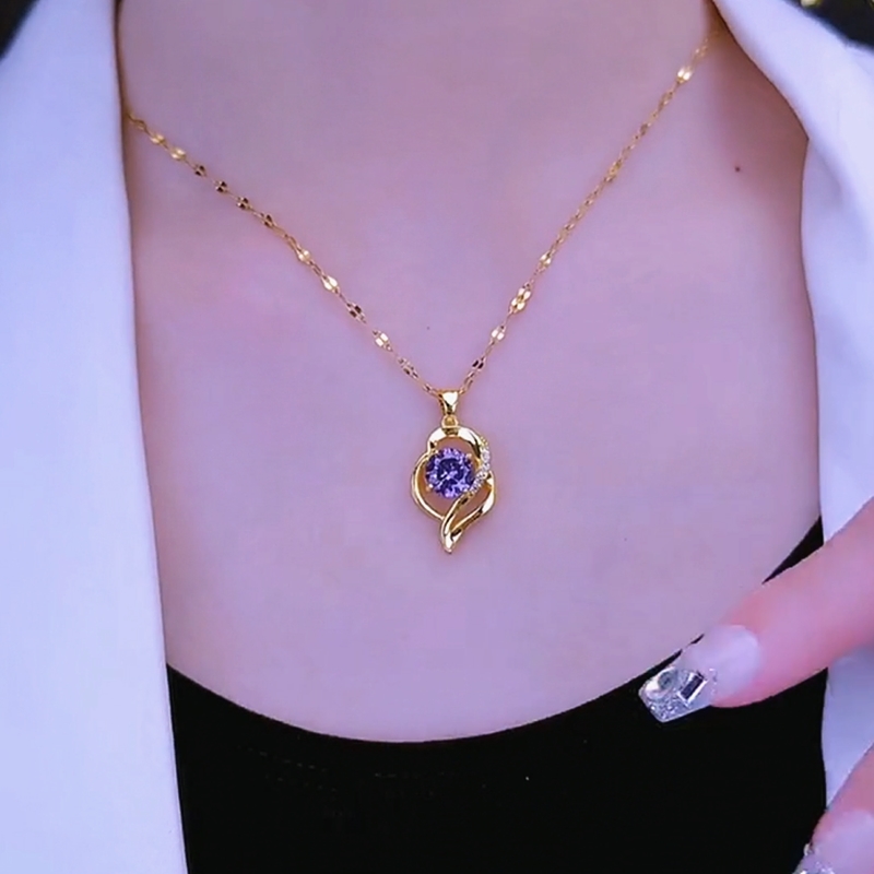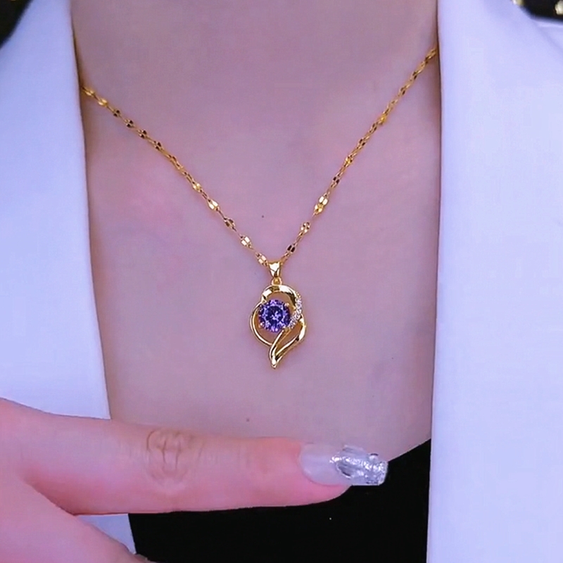 紫色心中有你项链2024年新款潮春夏锁骨链小众设计轻奢心形吊坠女