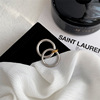 欧美个性时尚双环连接戒指女欧美ins复古时尚个性钛钢镀18k金指环