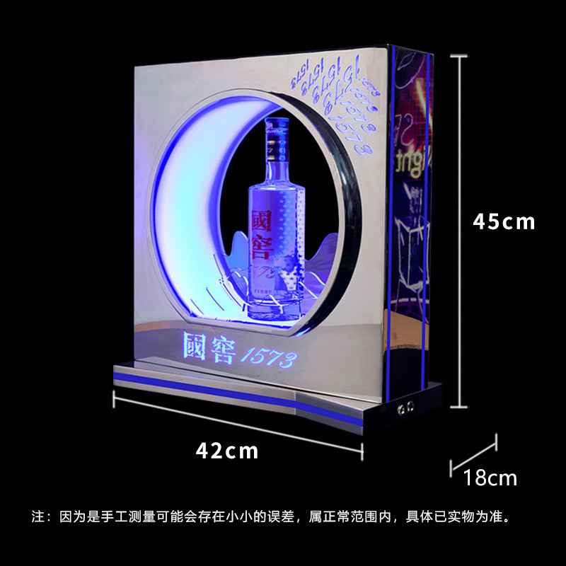 不锈钢方形白酒品鉴国窖1573led摆件展示架会专用高端发光白酒座