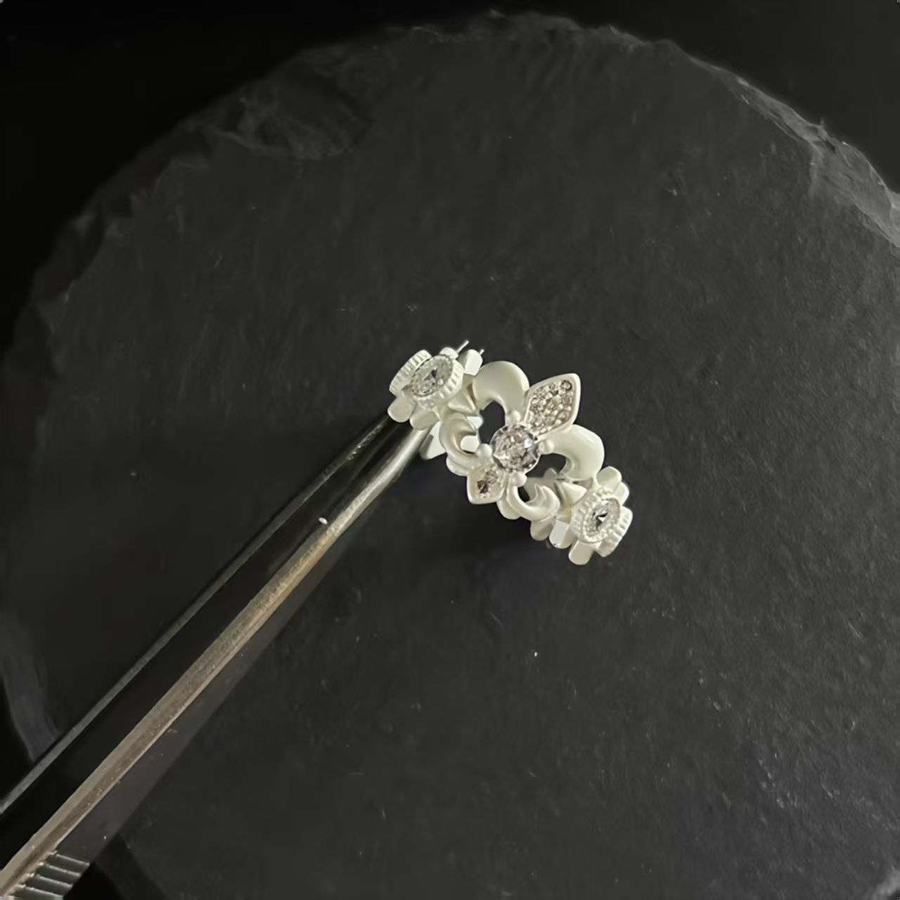 复古宫廷风白色鸢尾花戒指高级感轻奢气质食指戒时尚百搭小众指环