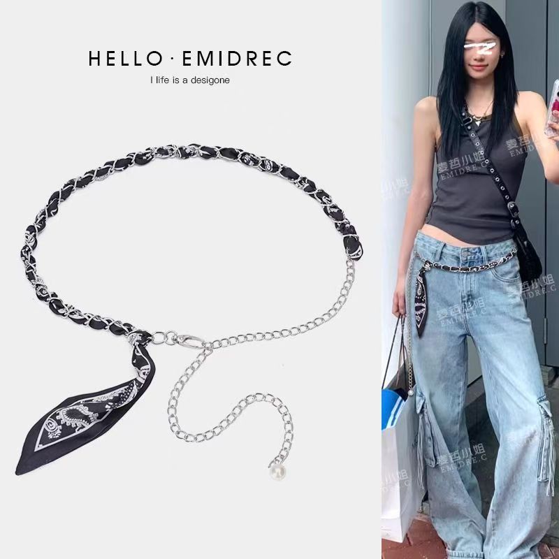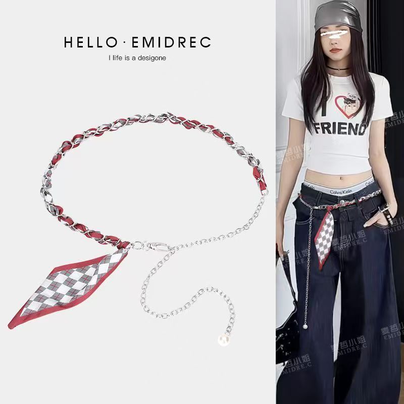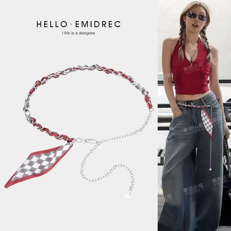腰间配饰腰带女链条丝带丝巾复古百搭高级感辣妹亚比风腰链皮带红