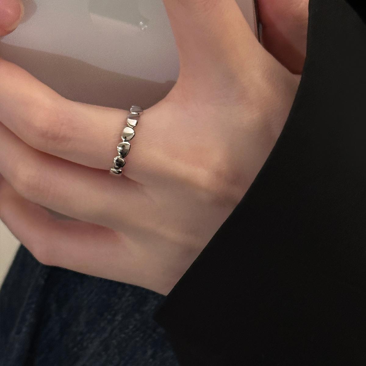 925纯银戒指女小众设计高级感不规则米粒拼接食指指环开口可调节