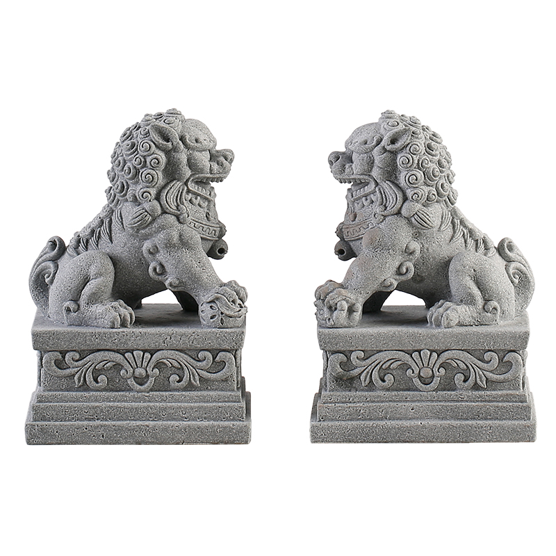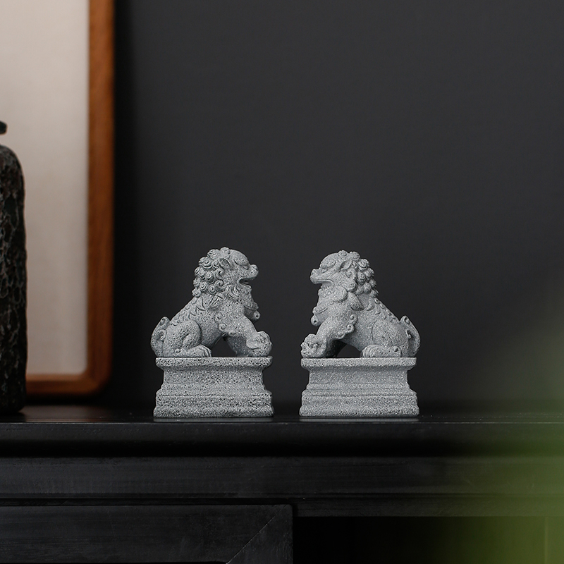 创意福瑞石狮子一对青砂石摆件茶宠盆景鱼缸造景桌面门厅阳台装饰