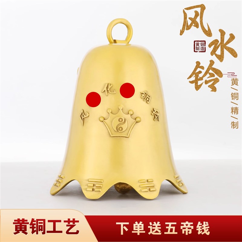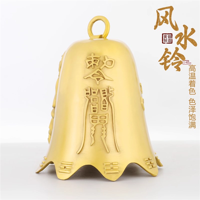 铜铃铛摆件五黄二黑镇守令铜铃黄铜风铃超响声大号入户门对门挂件