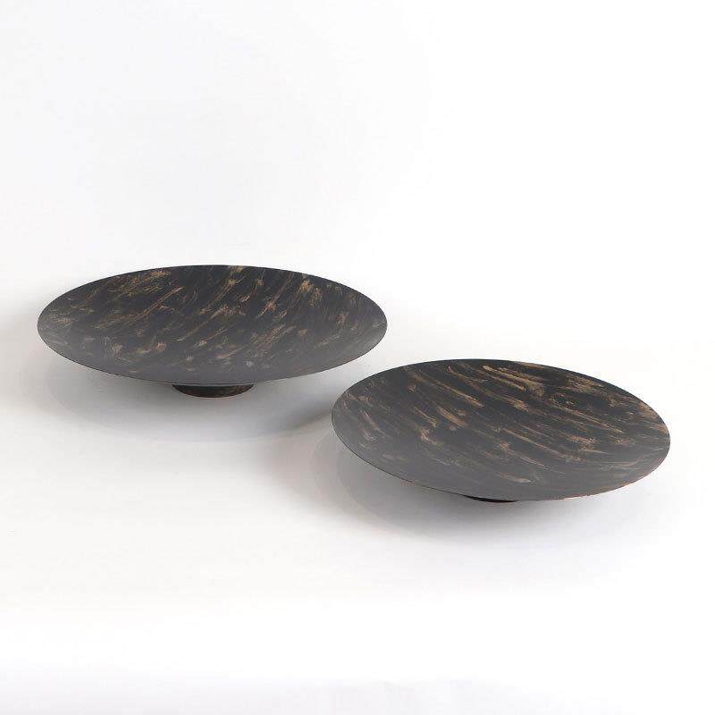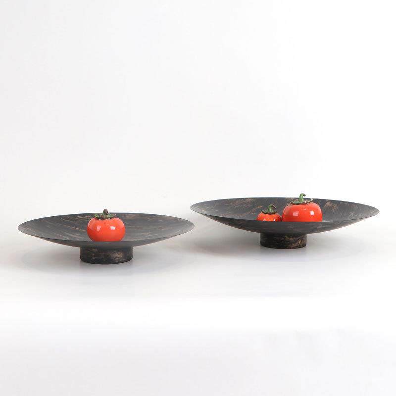 新中式现代金属圆形描金托盘摆件样板房客厅茶几会所果盘家居饰品