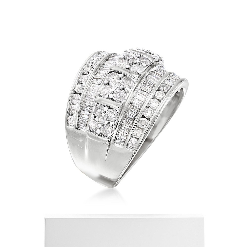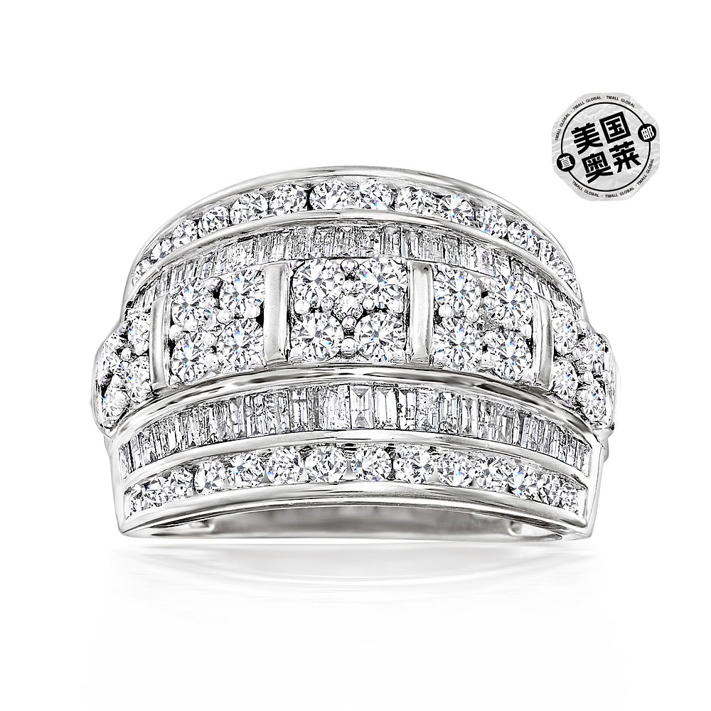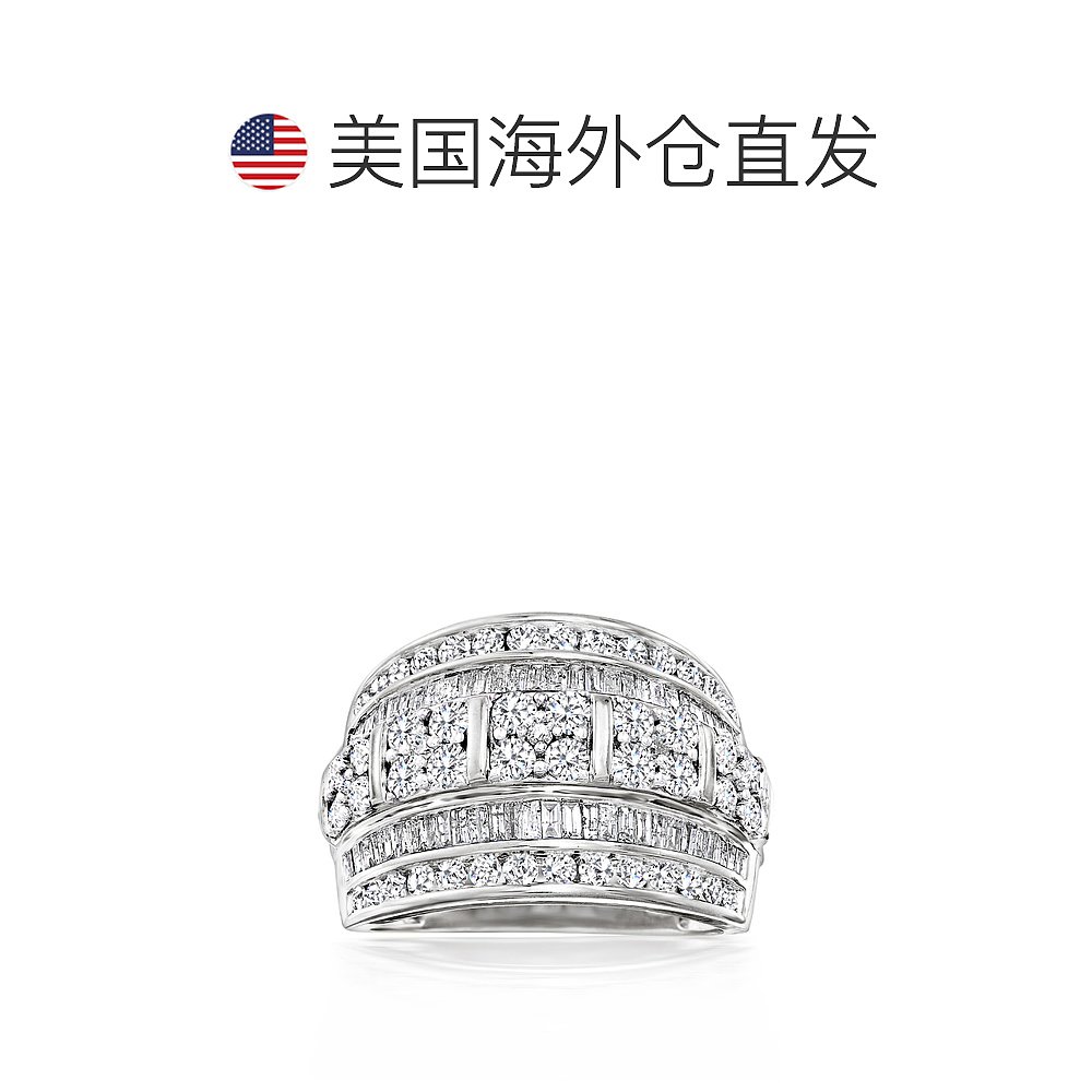 自营 925 纯银 Ross-Simons 圆形和长方形钻石多排戒指 - 白色 美