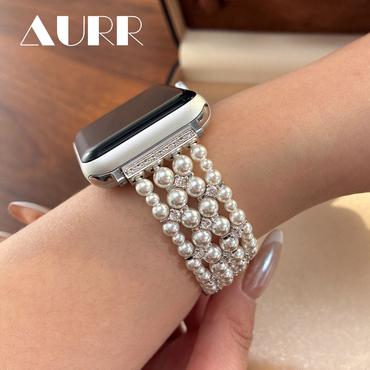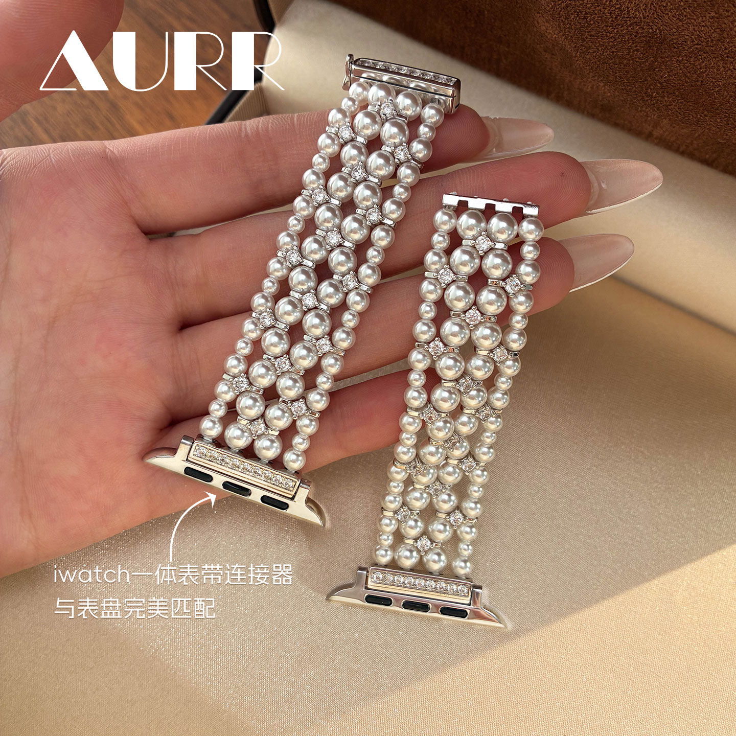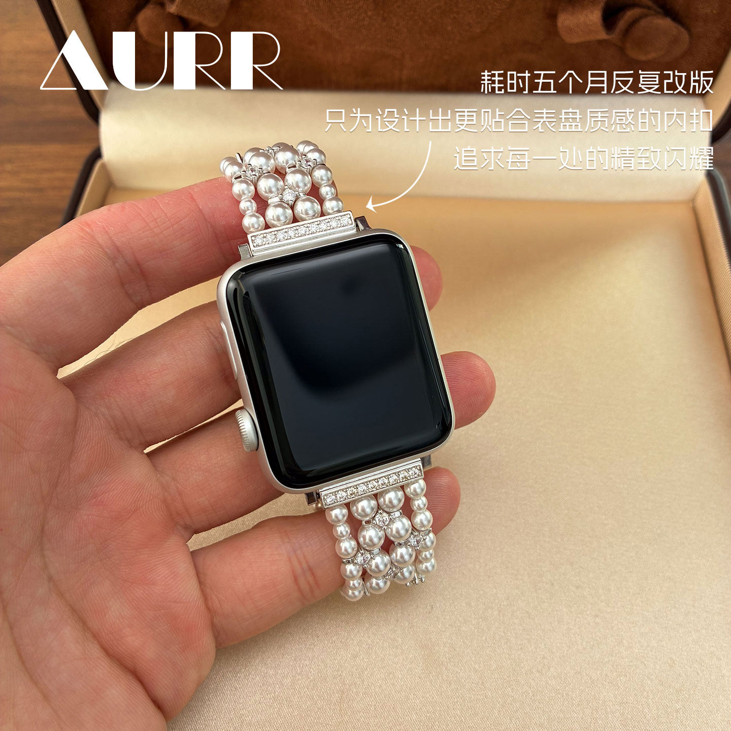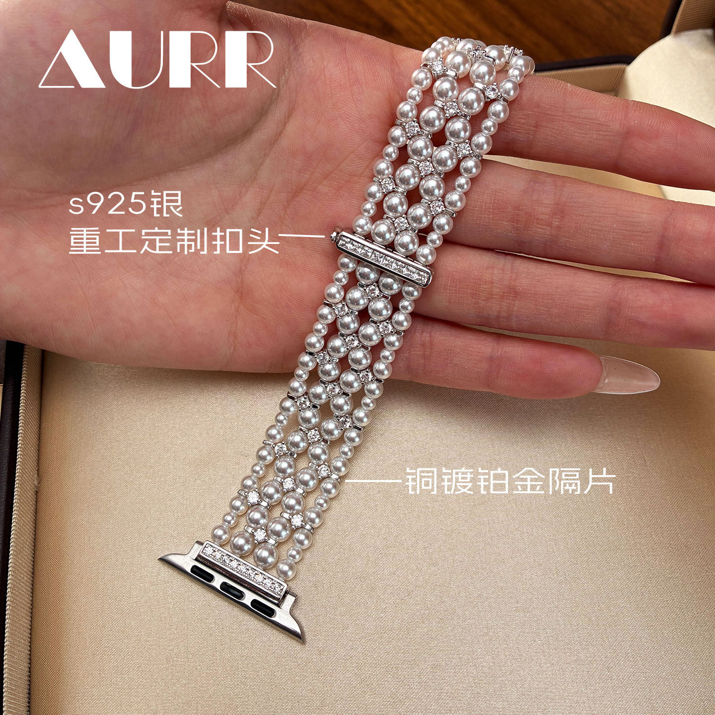 四层重工编织!苹果iwatch珍珠表带智能手表可替换表带澳白925银扣