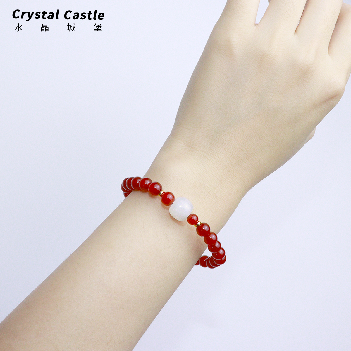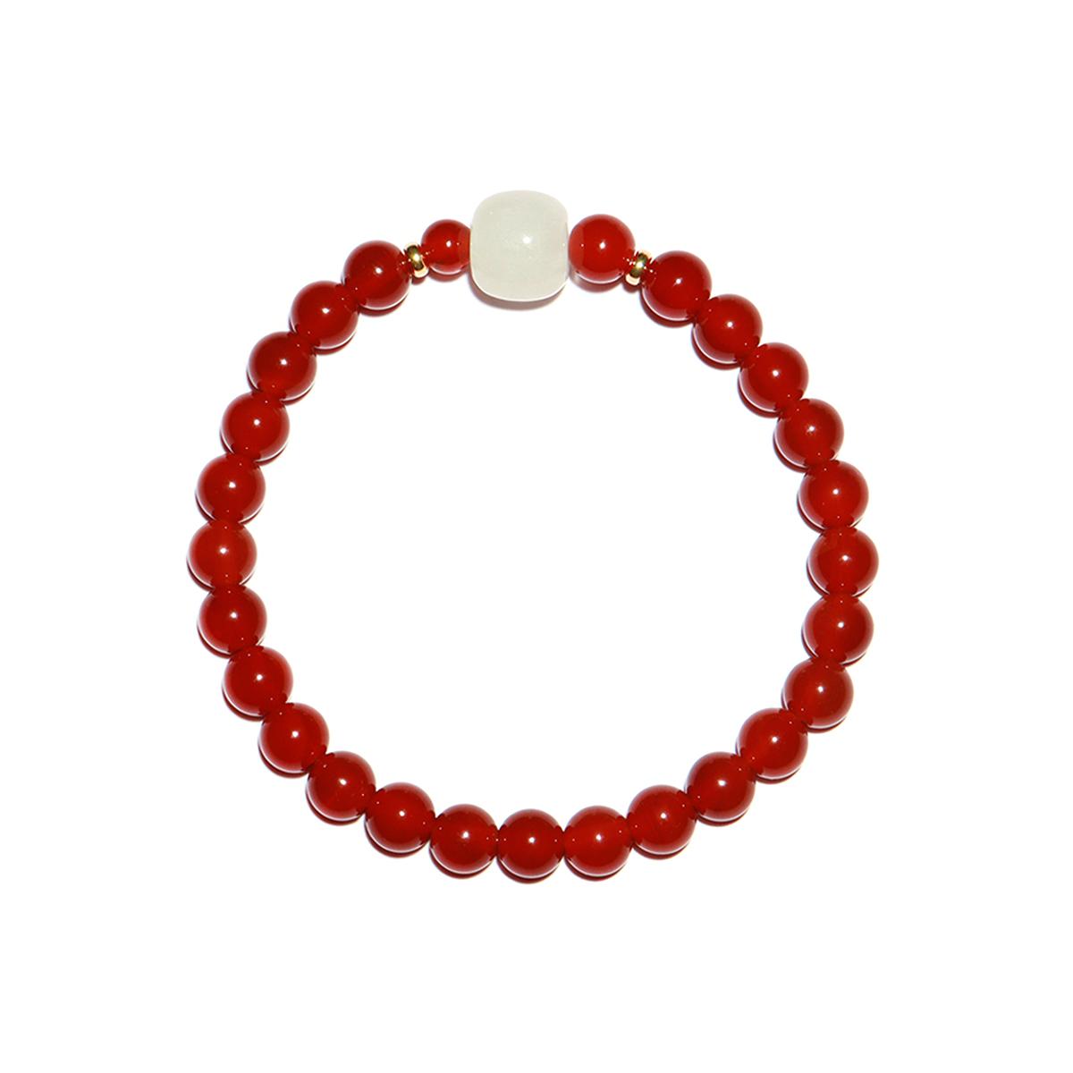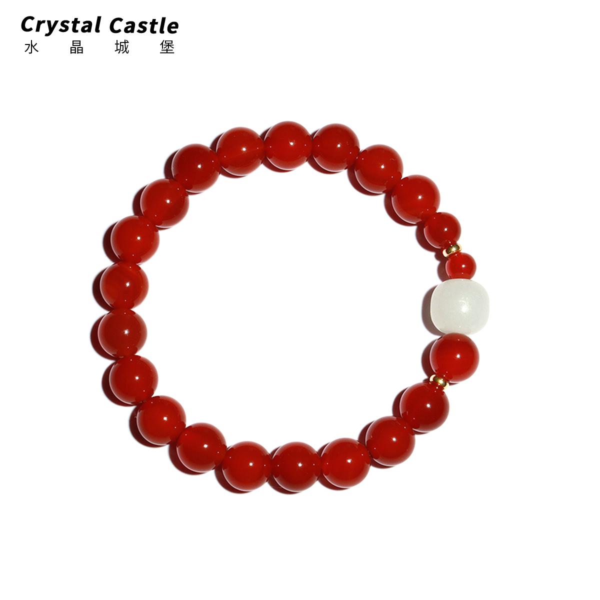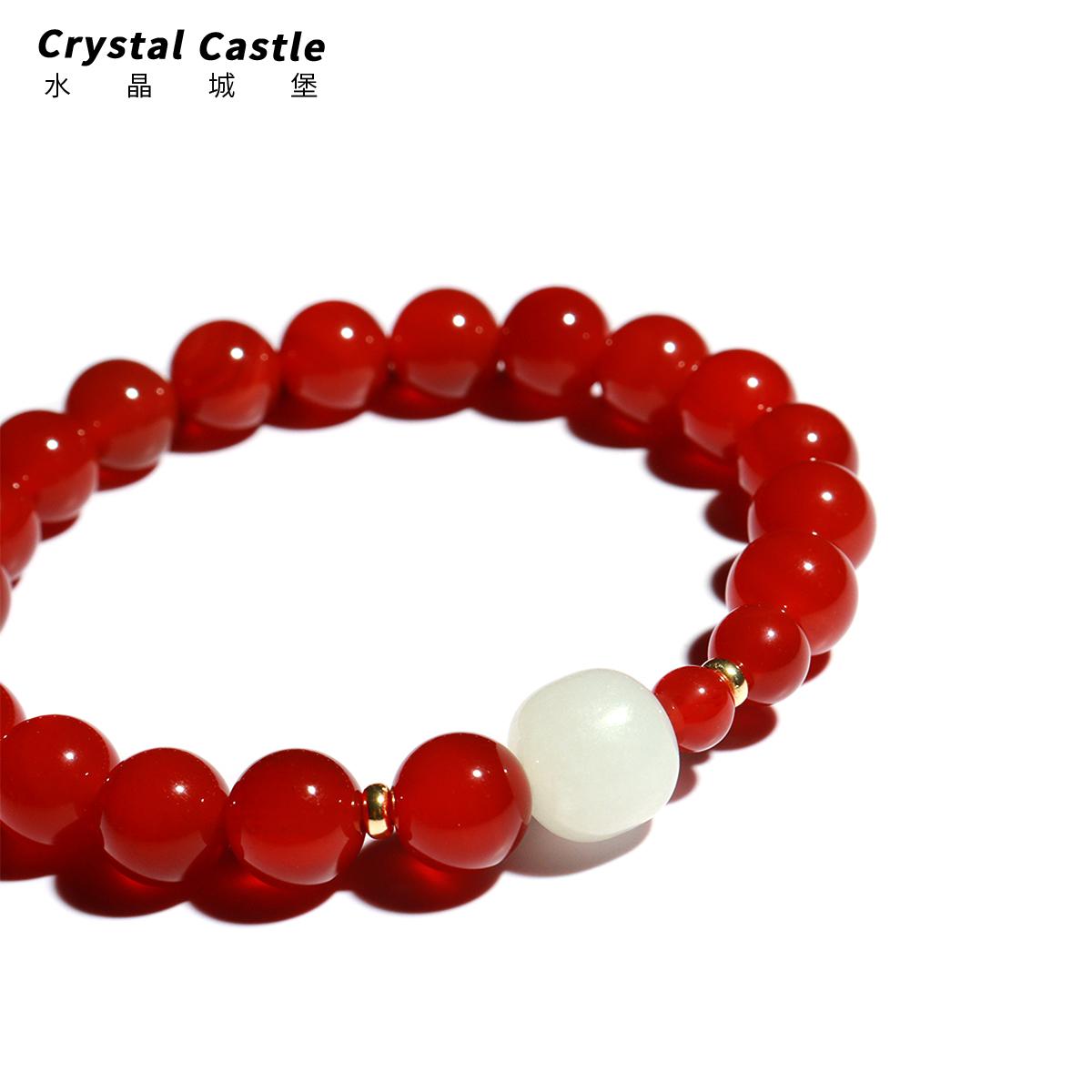 CrystalC正品天然红玛瑙手链女和田玉手串转运珠文玩本命年礼物