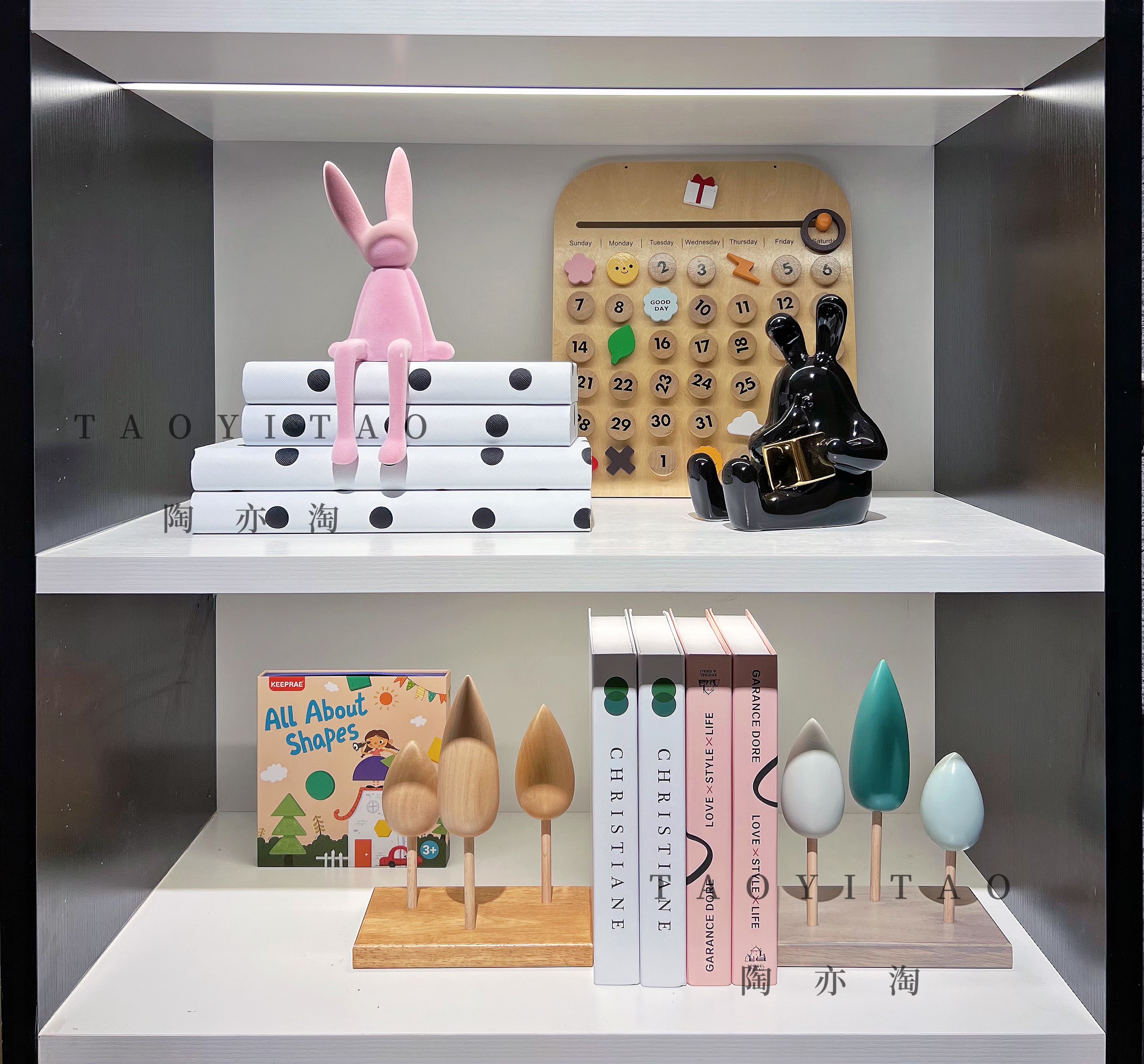 现代简约样板房间女孩房儿童房书柜衣柜书桌摆件可爱创意卡通兔子