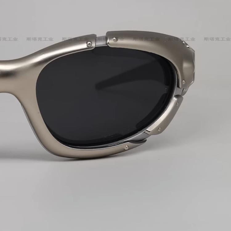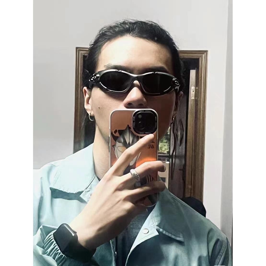Y2K复古街拍凹造型墨镜 未来感ins风骑行眼镜 合金塑胶拼接镜框