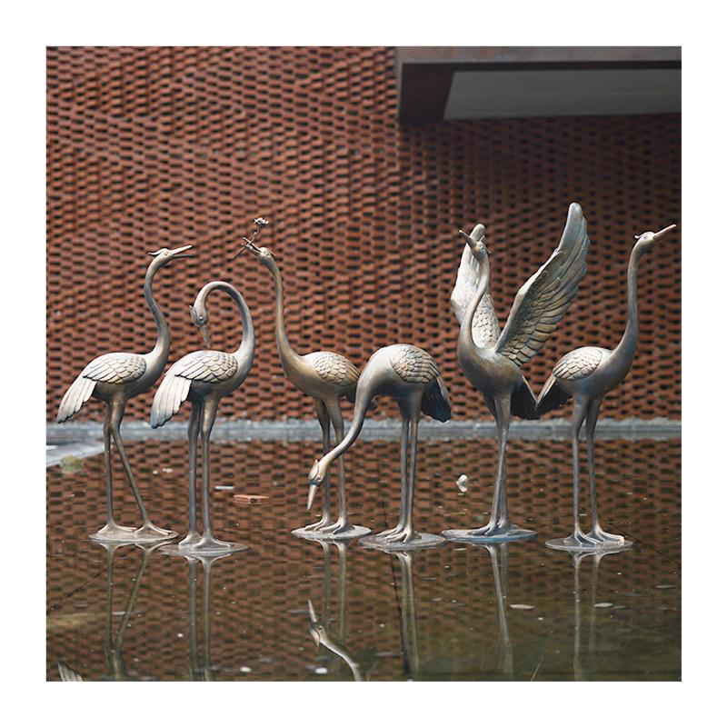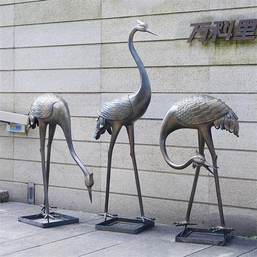 户外仿铜仙鹤雕塑模型园林草坪水池庭院玻璃钢装饰丹顶鹤景观摆件