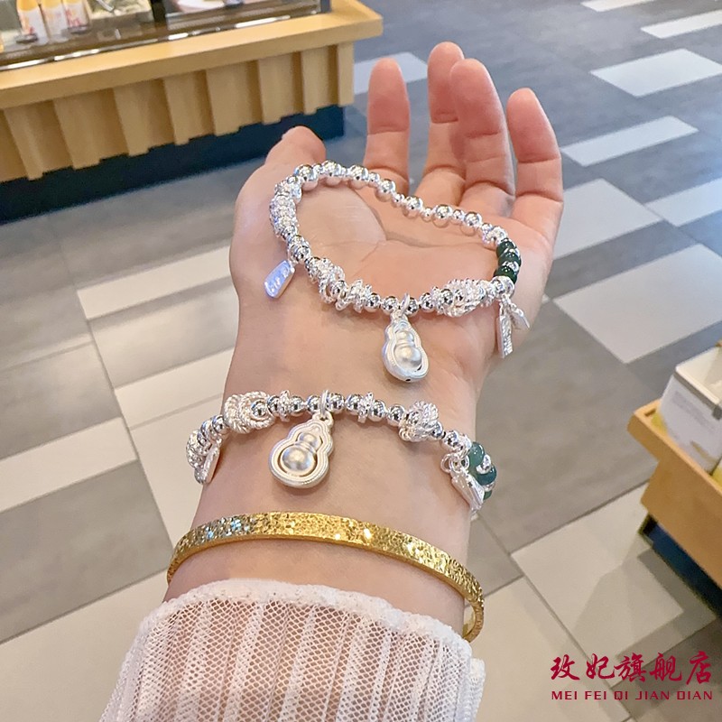 玫妃正生平安喜乐招财纳福葫芦和田玉s925纯银手链女时尚银珠手串
