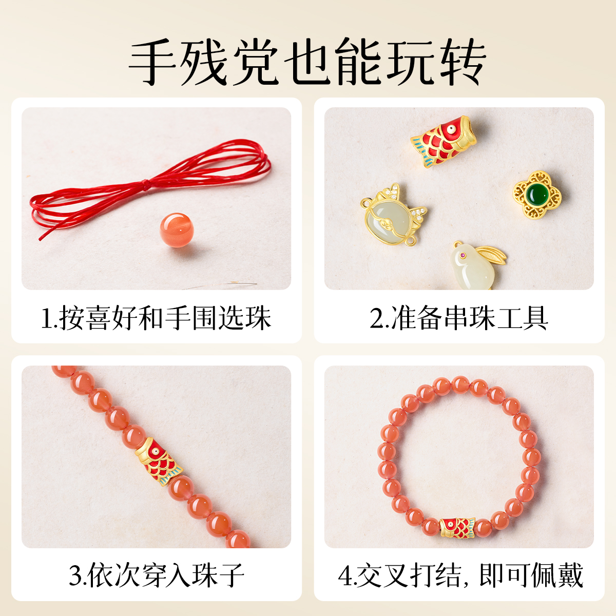 庆祥泰蜜蜡DIY散珠手串配珠绿松石南红玛瑙串珠手链手工珠子配件