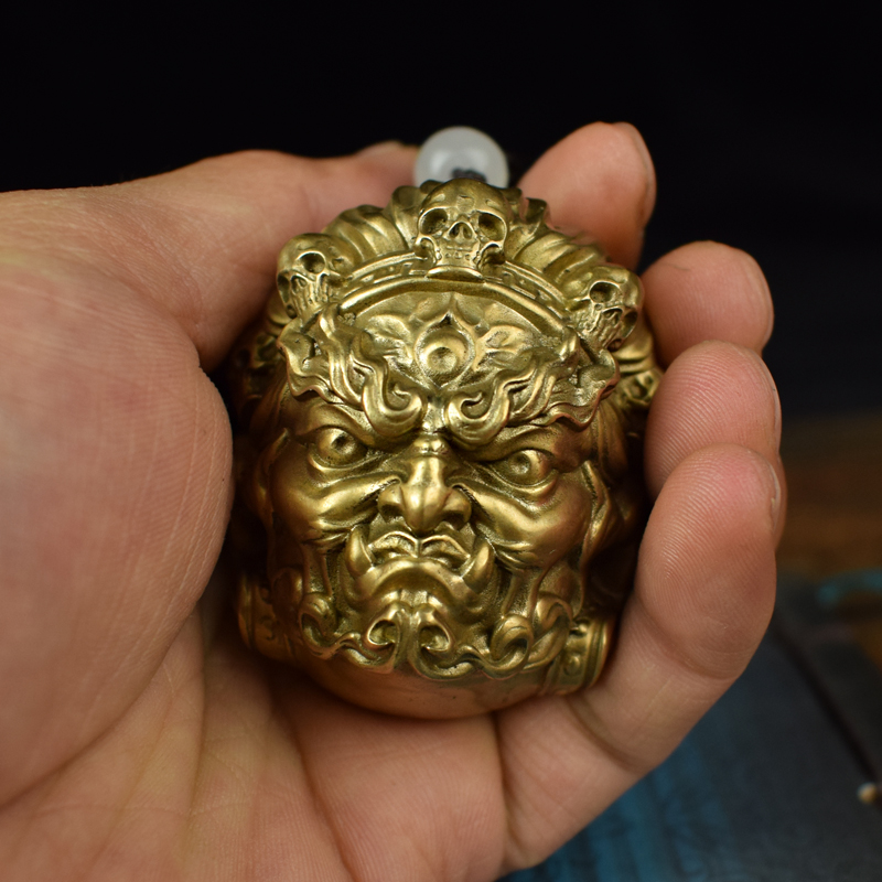 全铜实心大黑天财神随身手把件佛头手球文玩把件工艺品玛哈嘎拉
