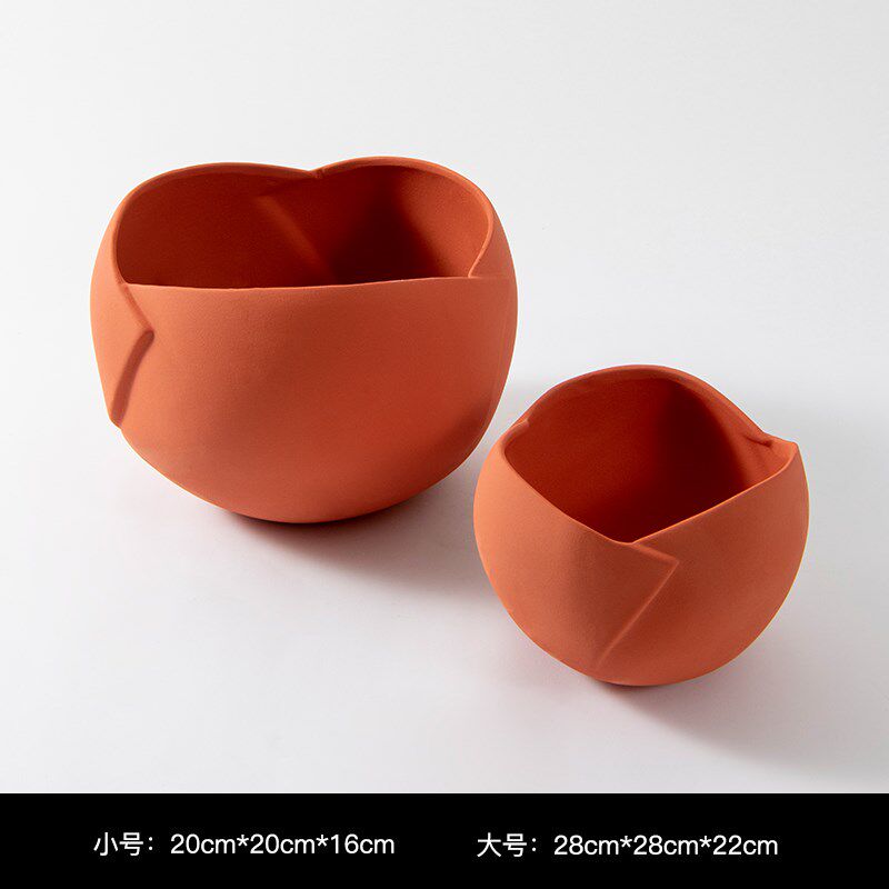 现代简约花瓶 高级感艺术陶瓷摆件轻奢插H花器橙色ins软装半圆花