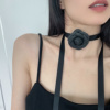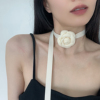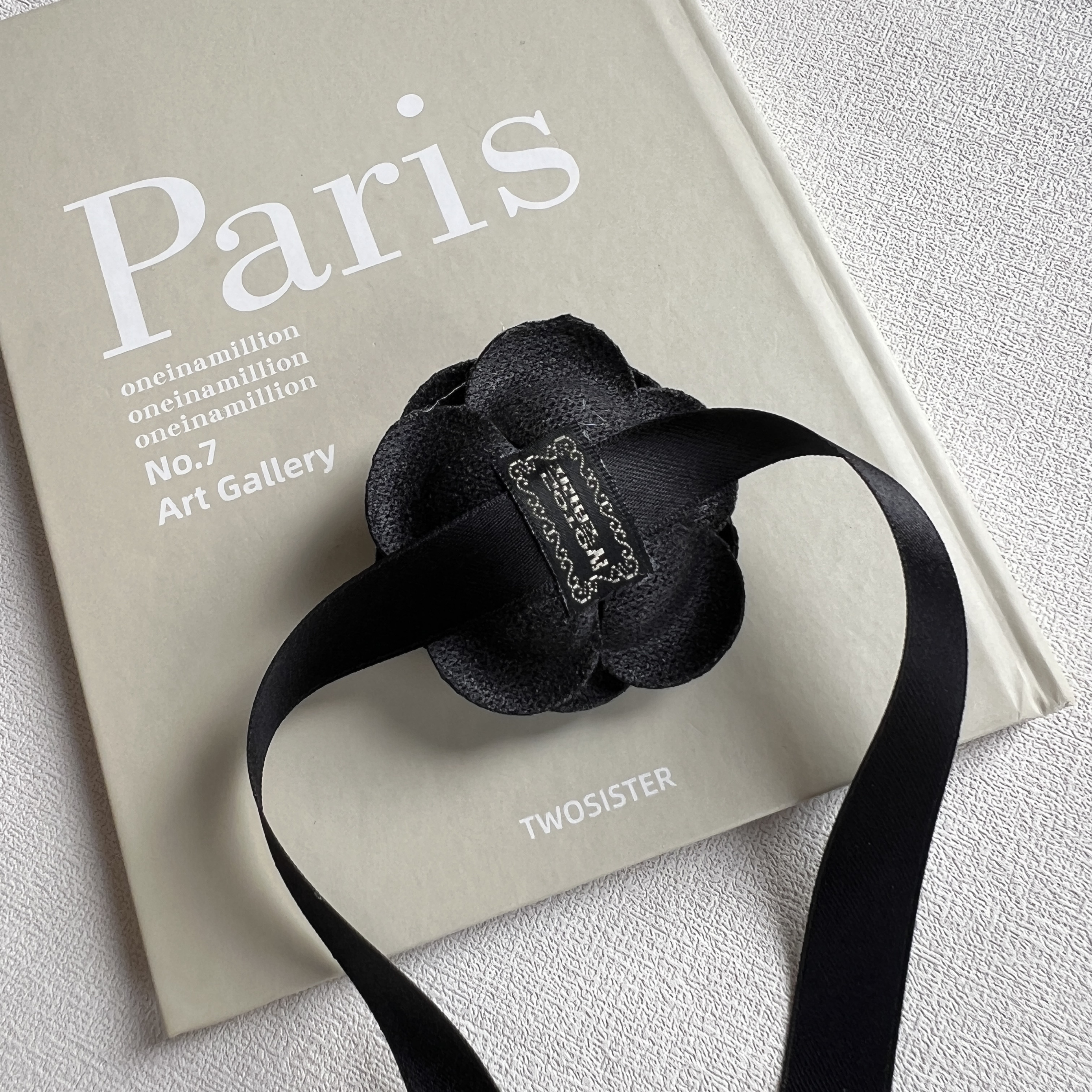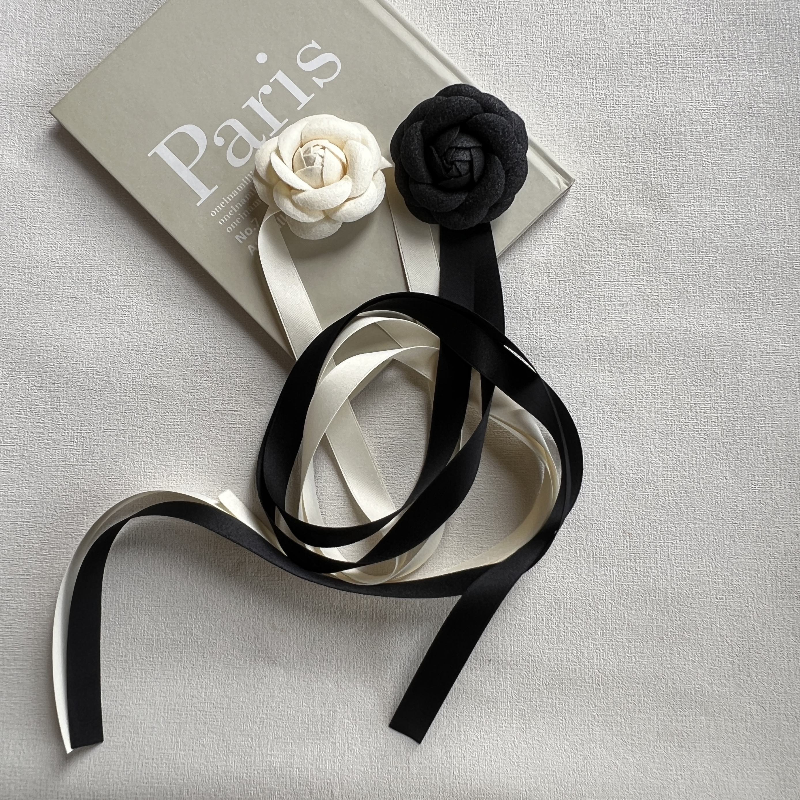 2025新款晚山茶花黑白花朵项圈蝴蝶结项链小香风细长丝巾飘带腰带