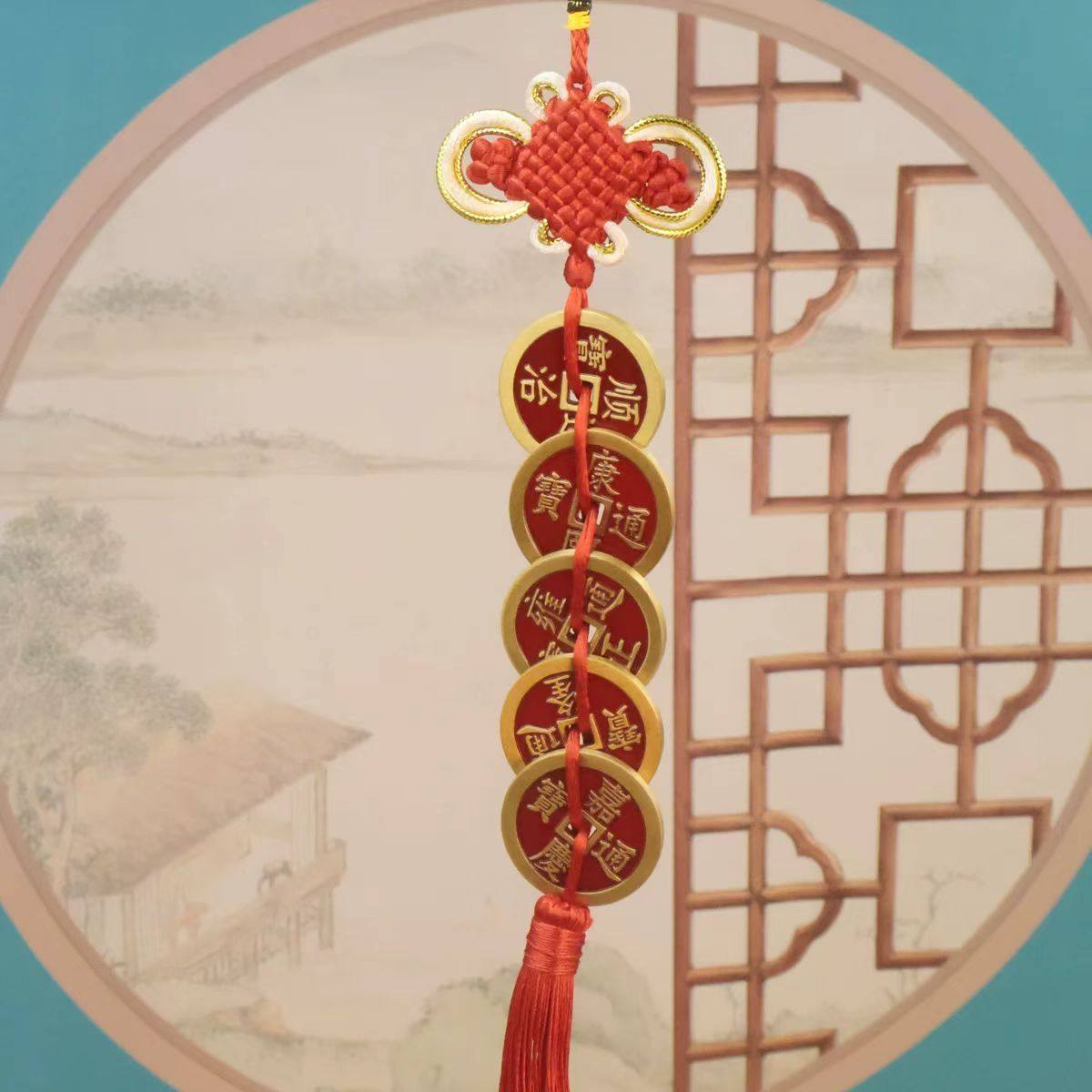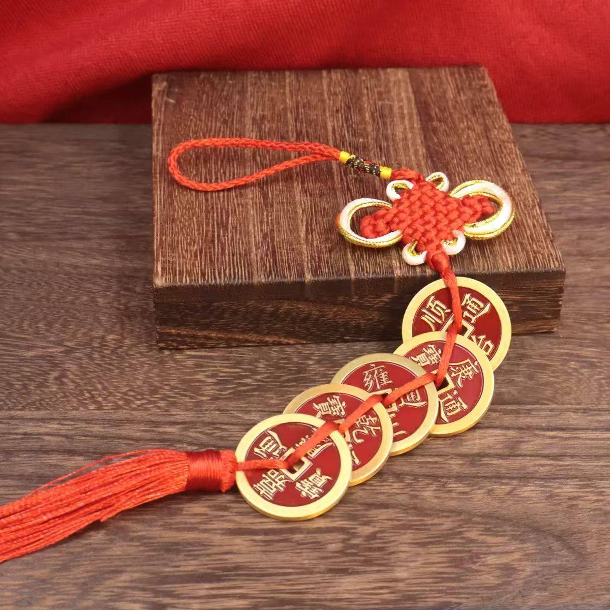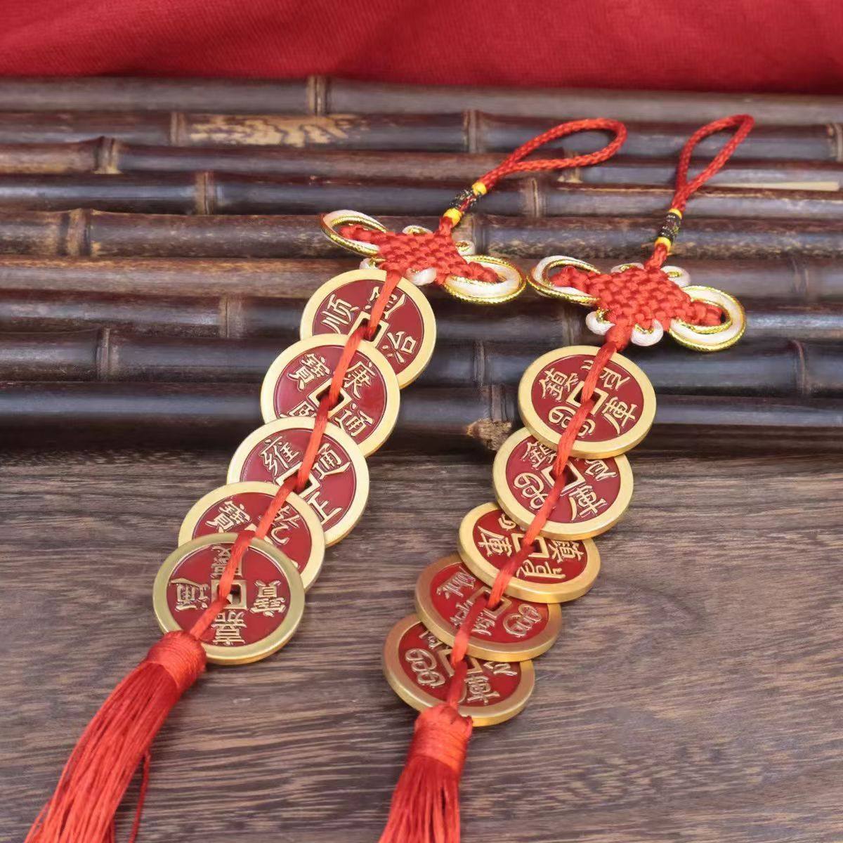 黄铜镇库五帝钱中国结压门槛过铜钱币家居门对门厨房对厕所门摆件