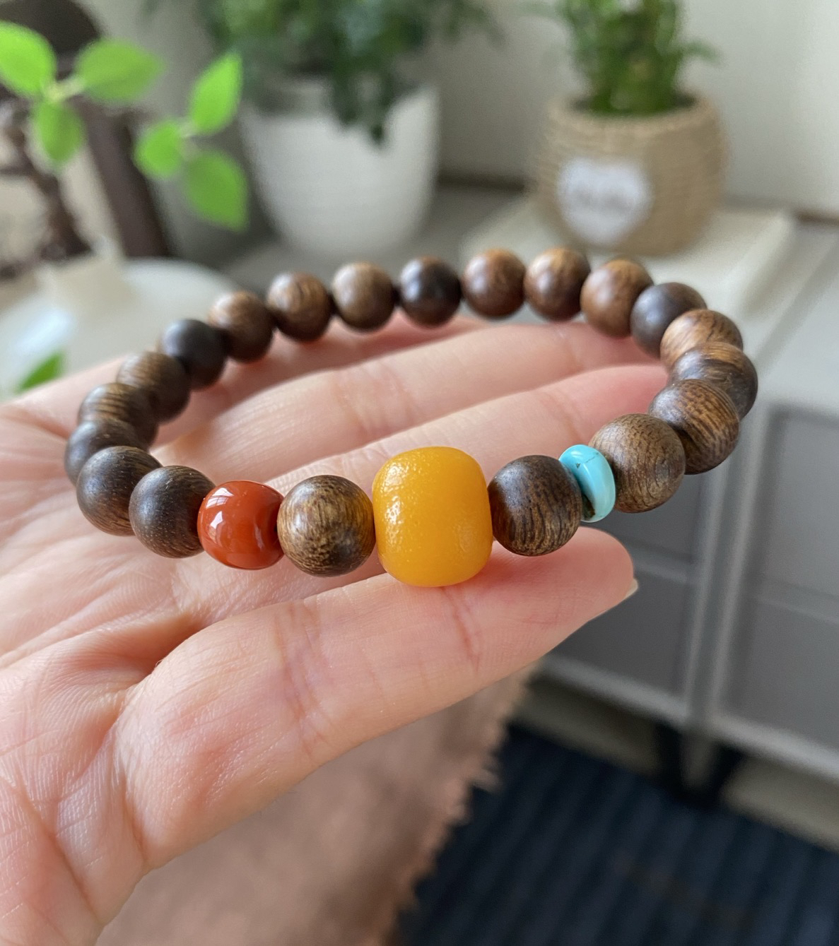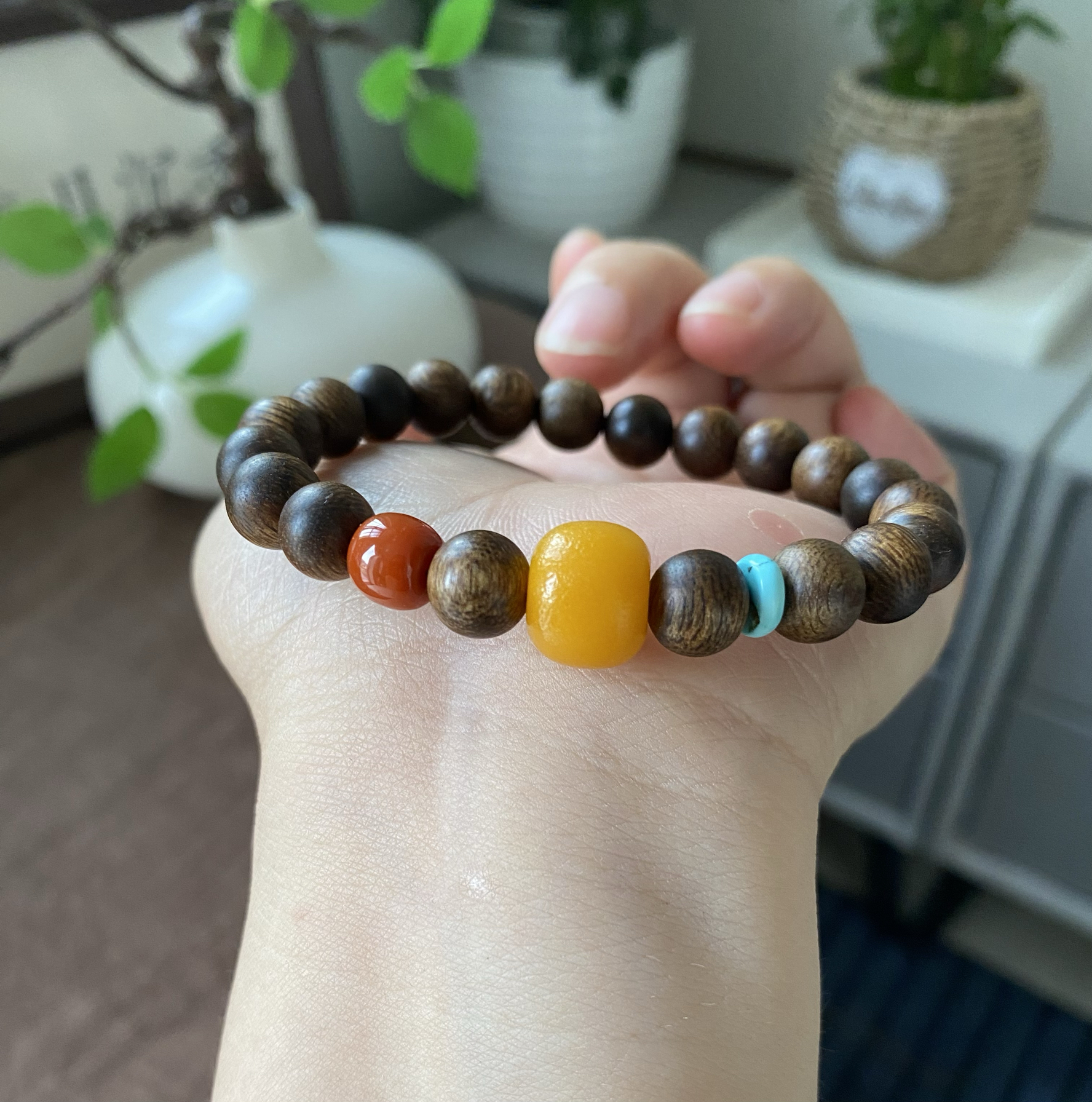 天然文玩手串沉香手串库克老山檀文玩手链捡漏天然南红绿松石配饰