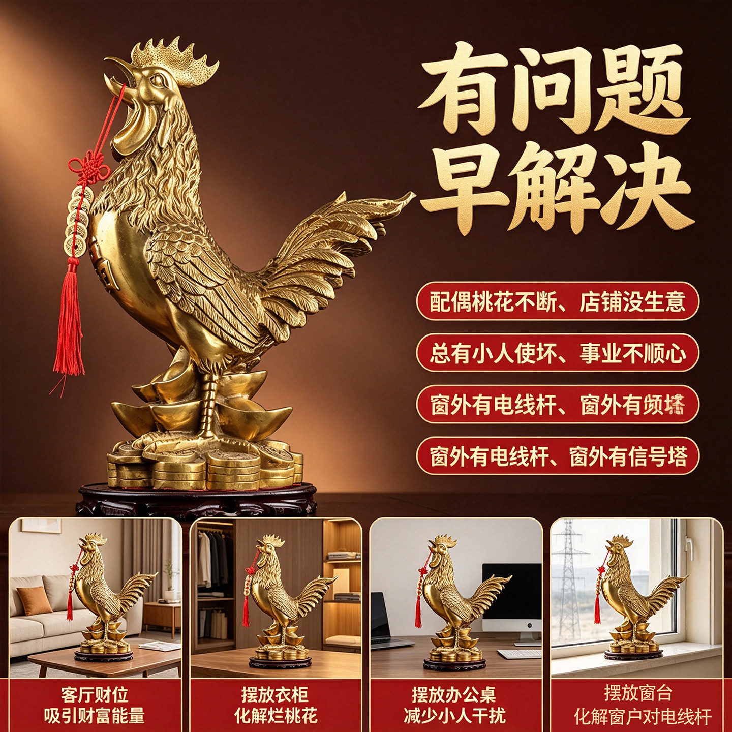 大公鸡摆件铜公鸡金鸡铜鸡的摆件黄铜金钱鸡家居饰品中式生肖摆件