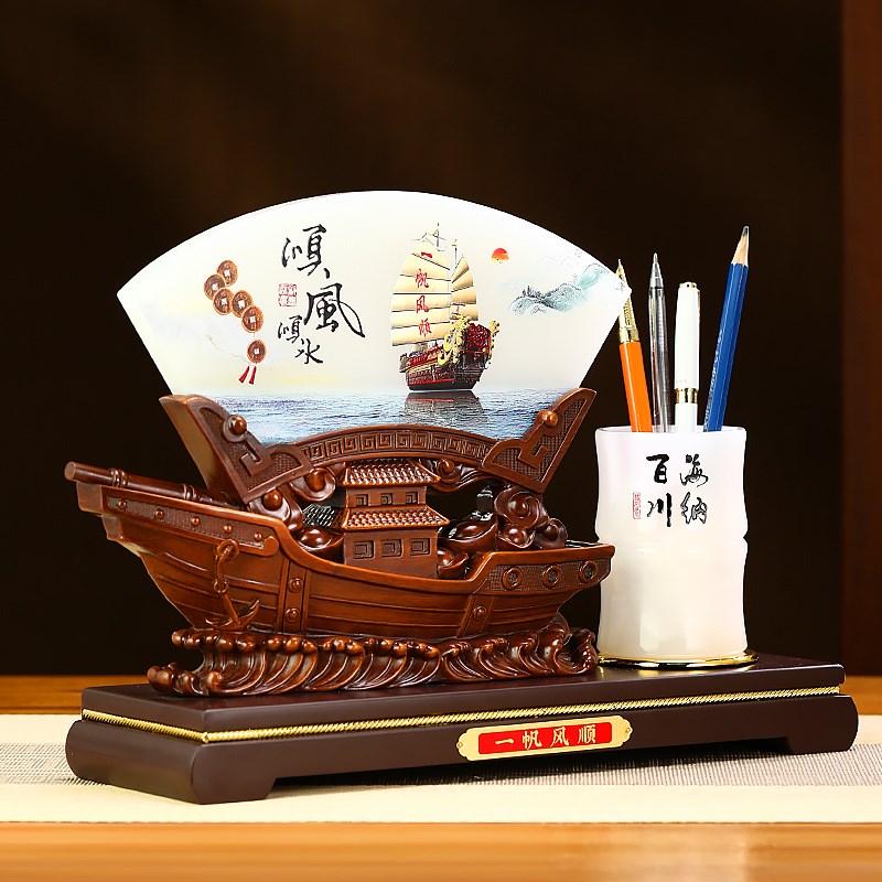 一帆风顺帆e船笔筒摆件老板办公室书桌高档实用装饰品送领导礼物
