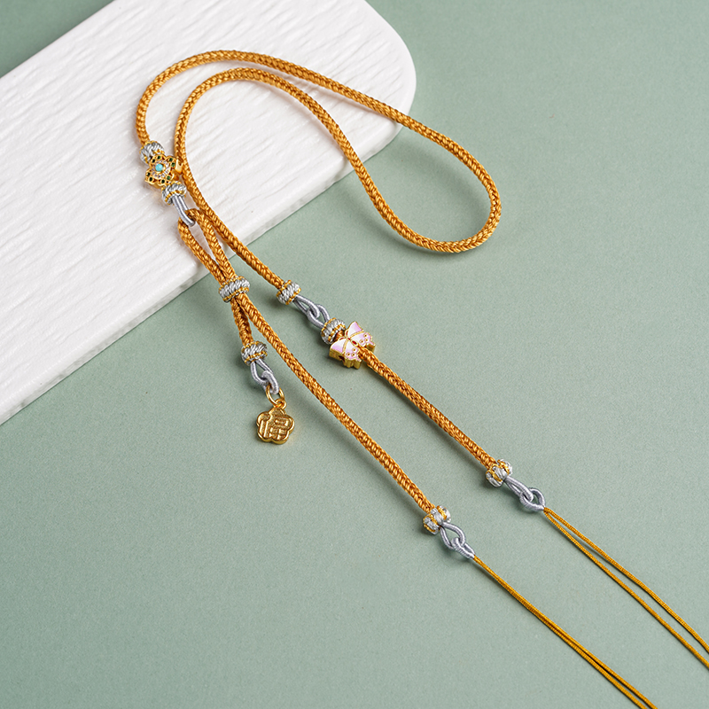 原创设计锦鲤锁双耳配链吊坠链条挂绳纯手工制作八股绳佛牌玉牌绳