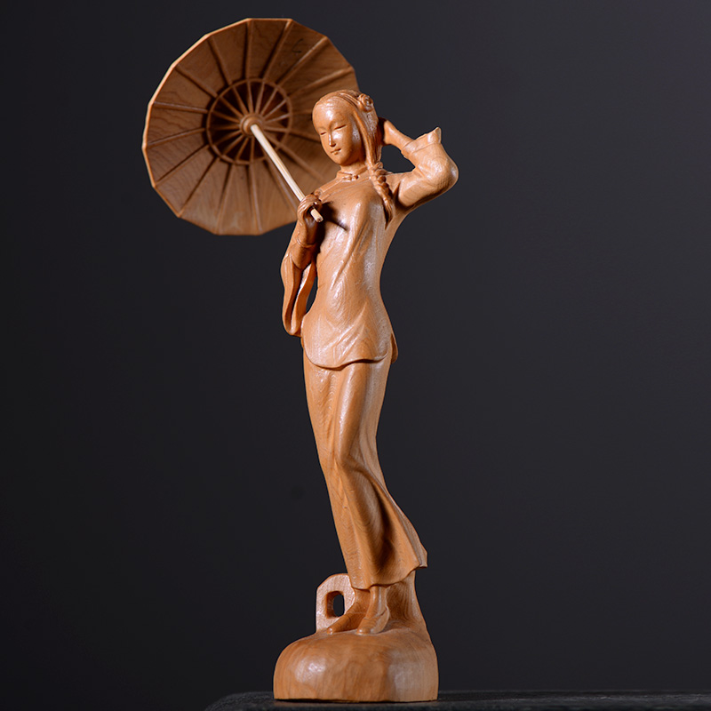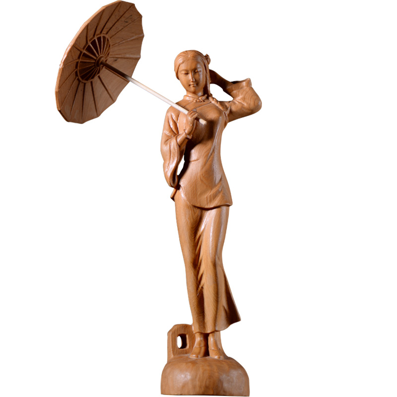 刺史太行崖柏木雕江南烟雨美女摆件实木手把件中式女孩雕刻工艺品