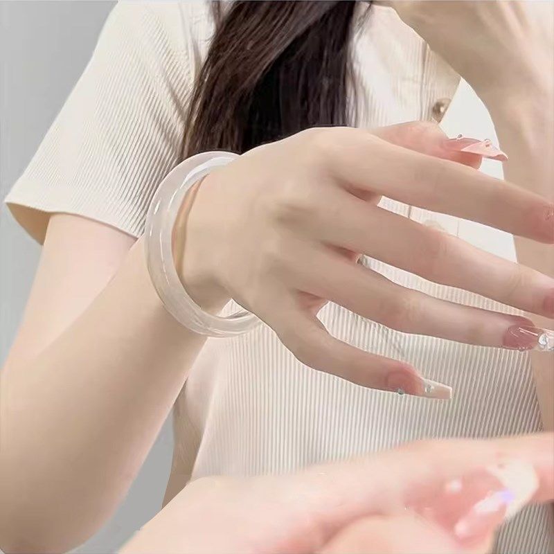 白月光玉髓手镯子女白透天然新中式国风玉镯送女友七夕礼物