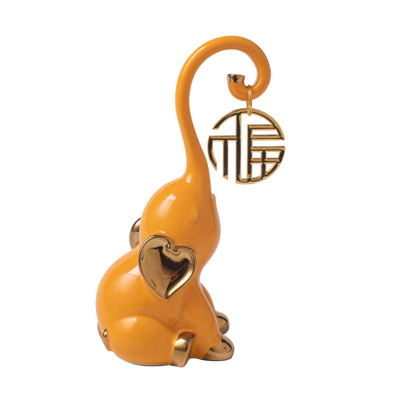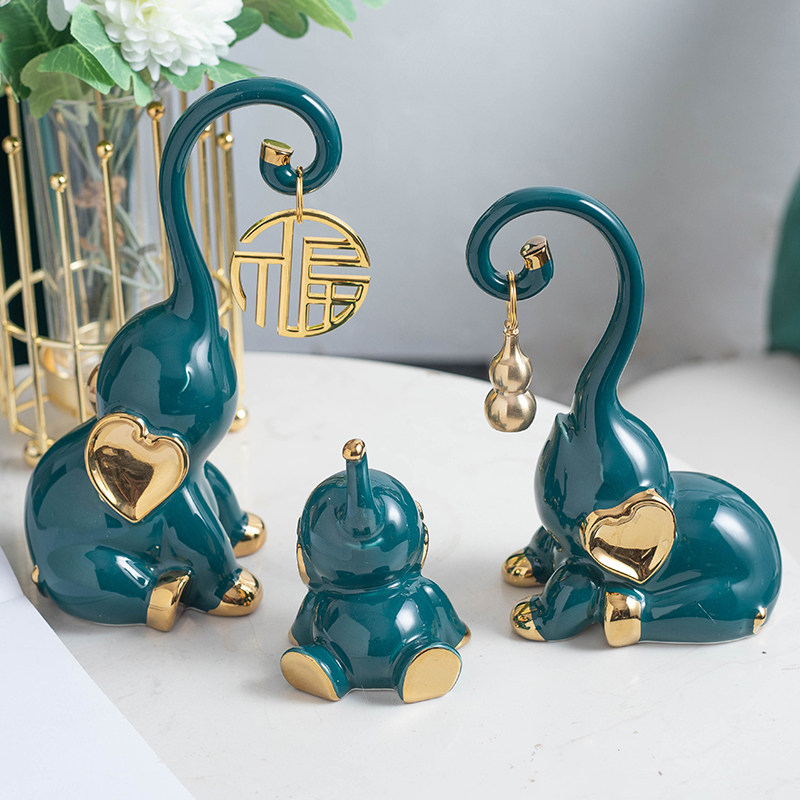 陶瓷轻奢一家三口福禄大象家居饰品客厅酒柜玄关乔迁礼物装饰摆件