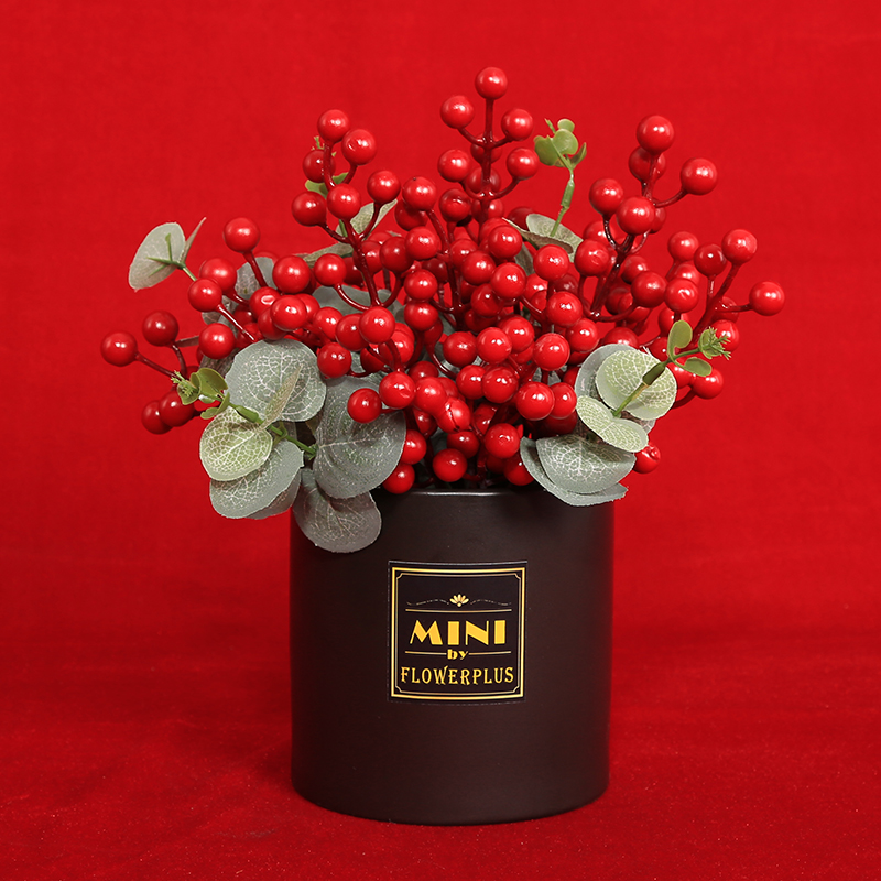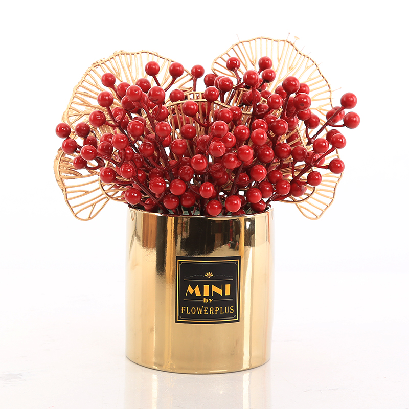 红果仿真花盆栽干花陶瓷花瓶餐桌花艺办公室茶几书房结婚年味摆件