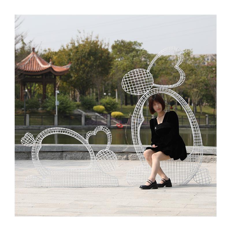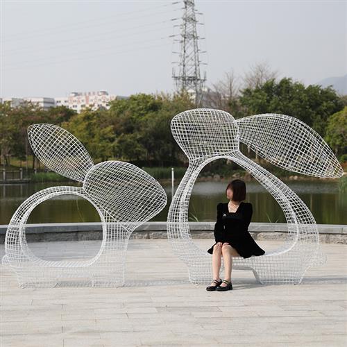户外不锈钢动物网红打卡兔子天鹅大象座椅雕塑园林售楼处装饰摆件