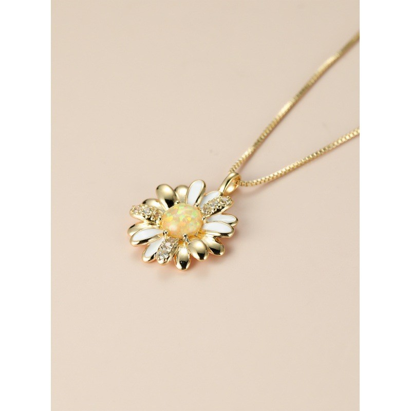 新款跨境欧美金色黄澳宝清新雏菊花朵黄钻滴油女式百搭项链
