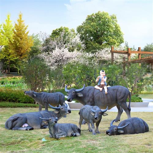 户外大仿真牧童骑水牛农耕模型雕塑摆件玻璃钢公园林草坪景观装饰