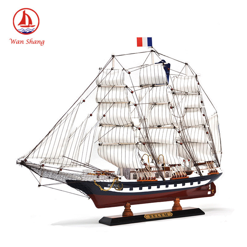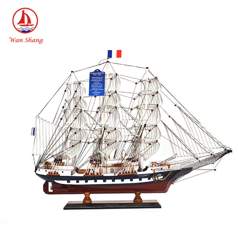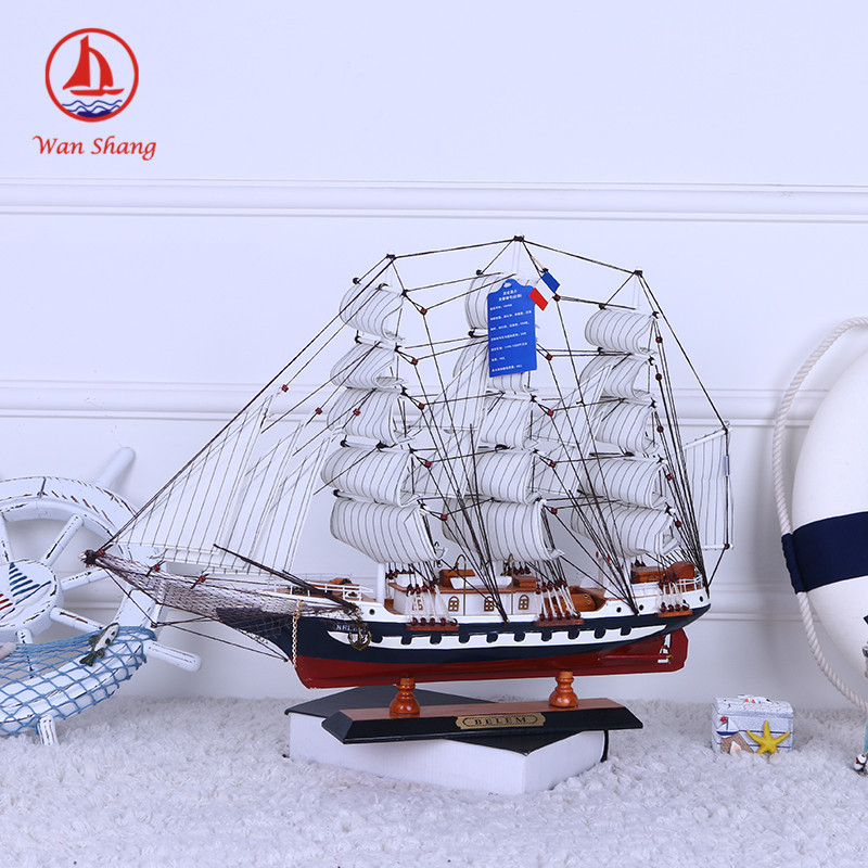 热销地中海65cm帆船模型摆件 仿真原木船装饰批发装饰工艺品