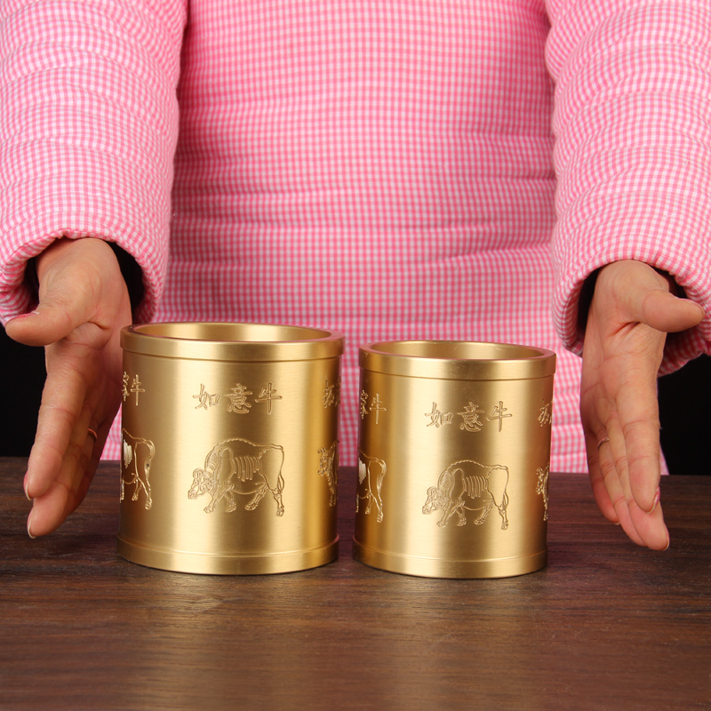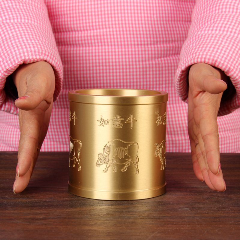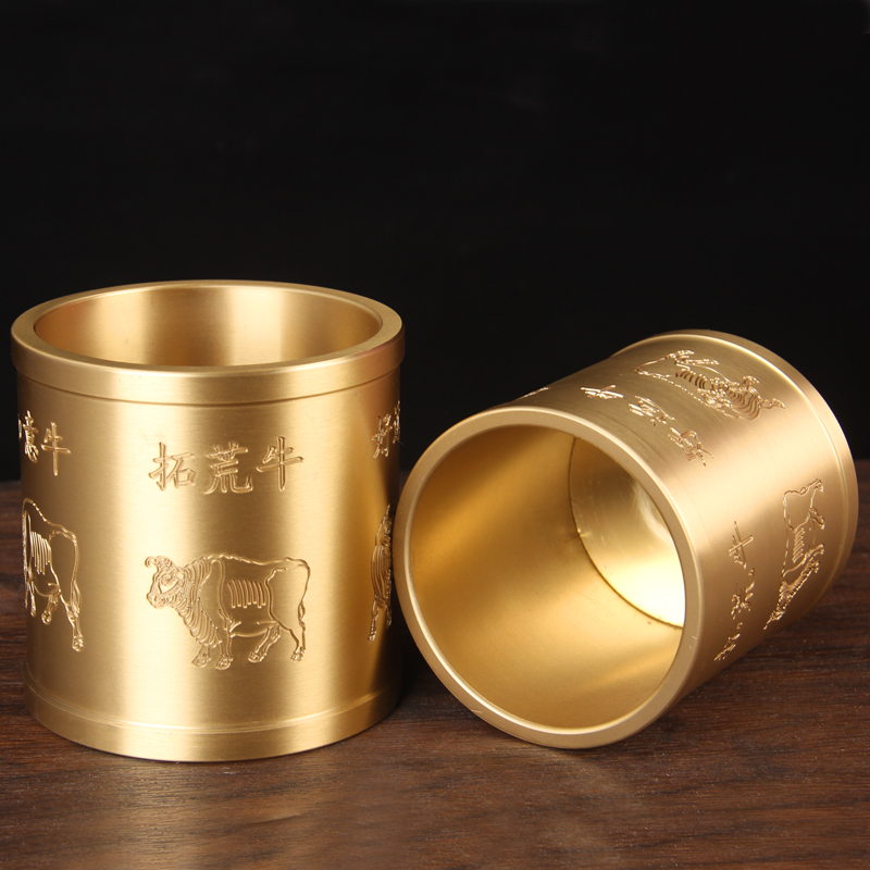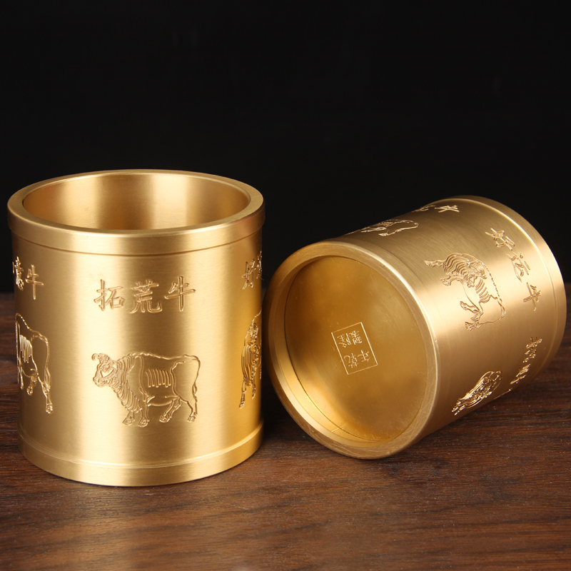 铜五牛图笔筒摆件 铜笔筒摆件 实心铜笔筒摆件