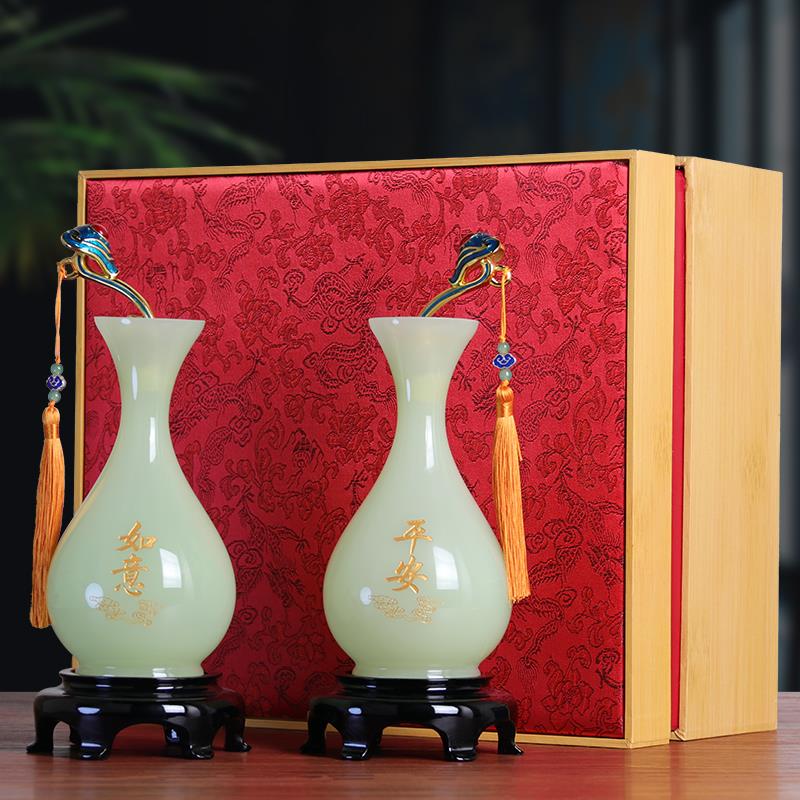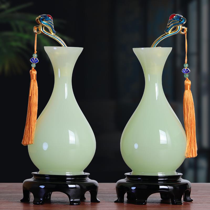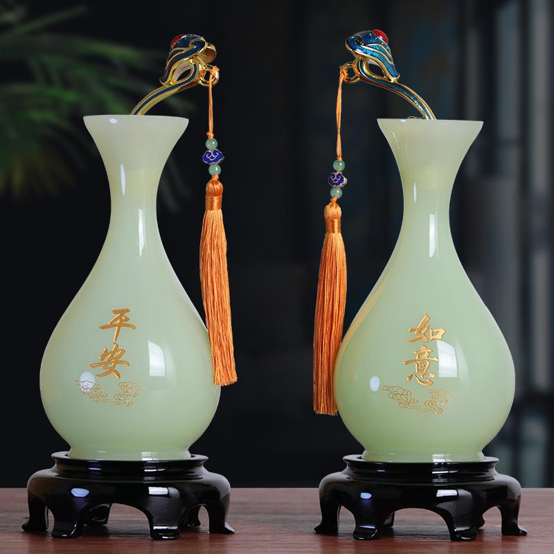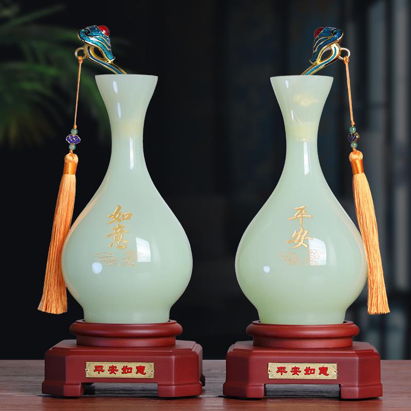 平安如意琉璃玉花瓶摆件家居客厅玄关新房装饰工艺品乔迁新居礼品