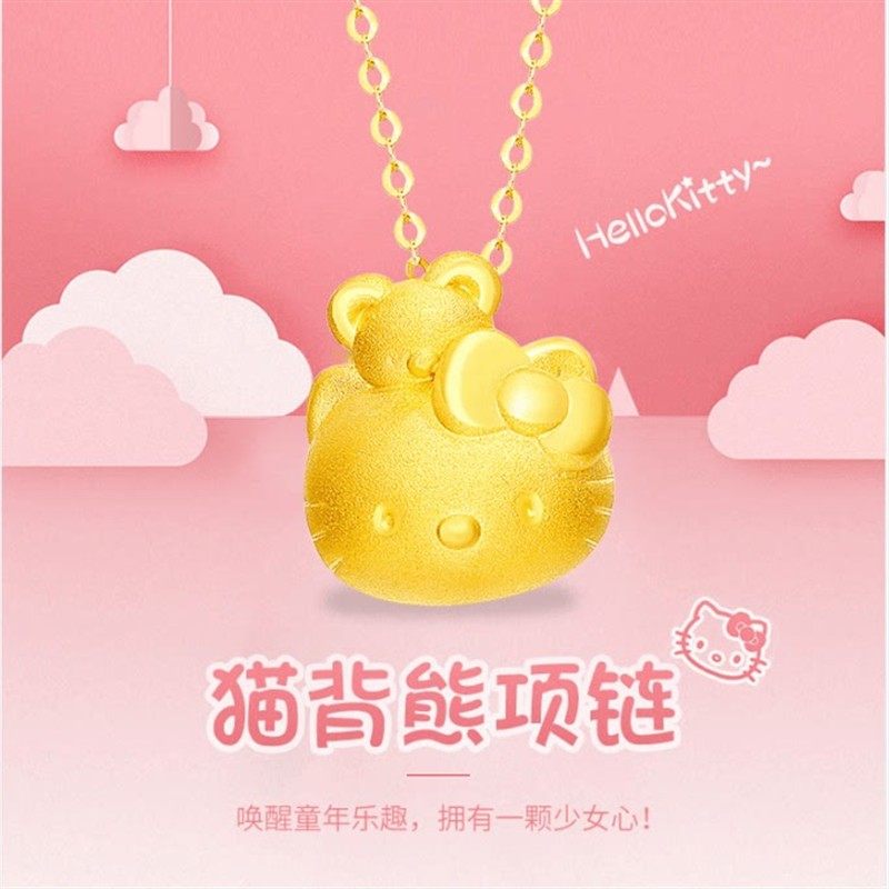 日本正品helloKitty凯蒂猫吊坠金包银锁骨链项链挂坠送女友礼物