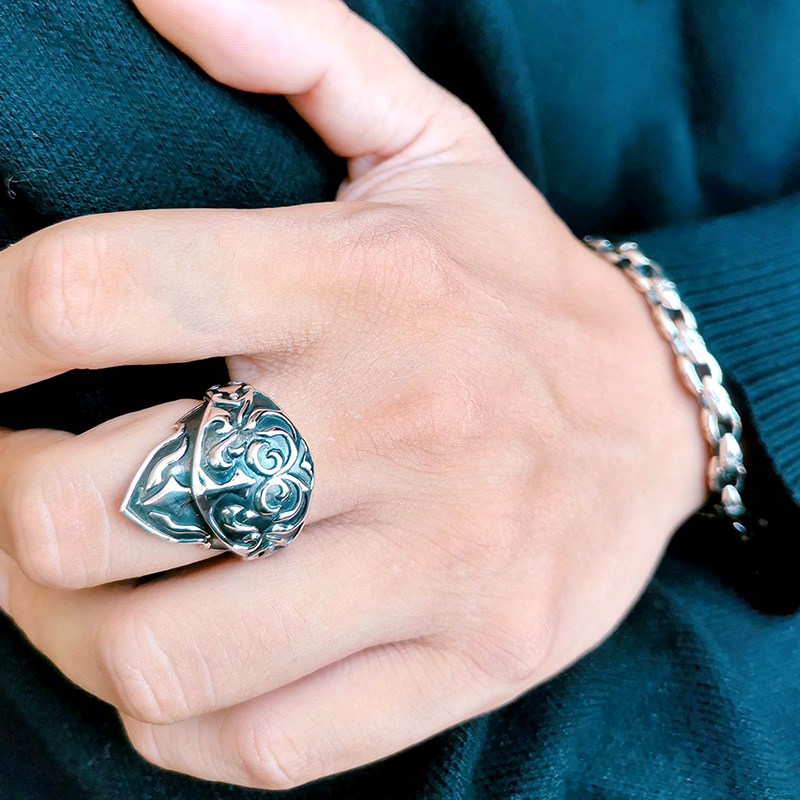 [勇往直前]VANTICHI盔甲铠甲纯银戒指男复古个性时尚食指中指指环