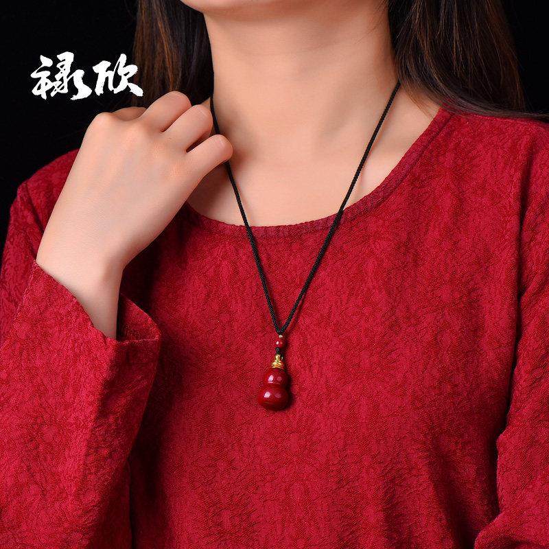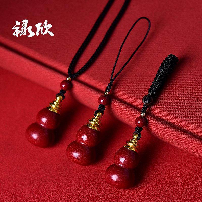 朱砂葫芦吊坠可打开空心瓶子装天然原石转运珠项链钥匙扣手机挂件