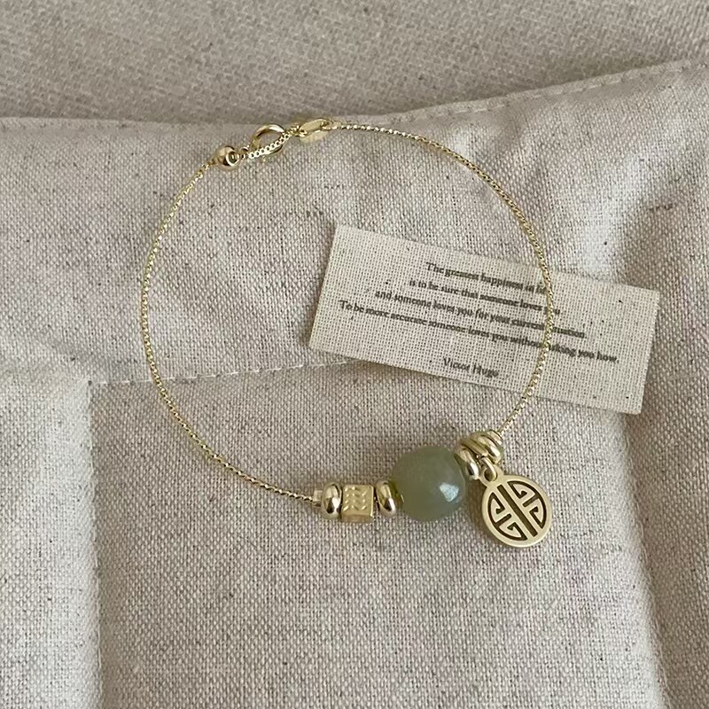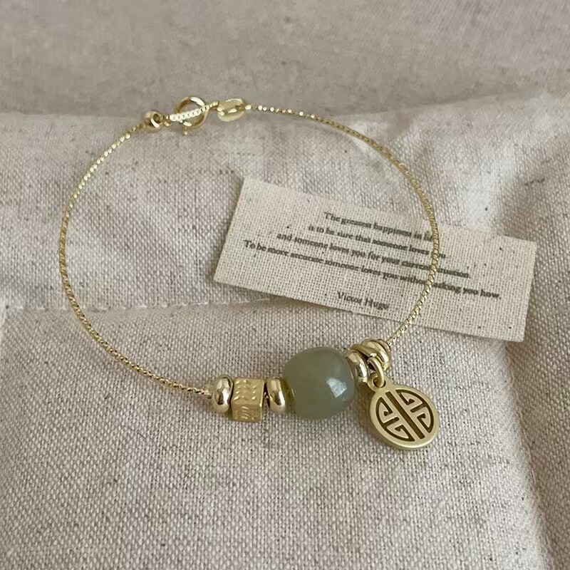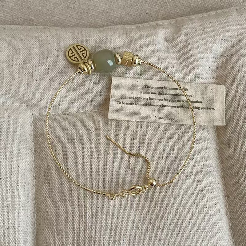 新中式绿色天然石福牌手链女轻奢复古个性潮流时尚百搭手环手饰
