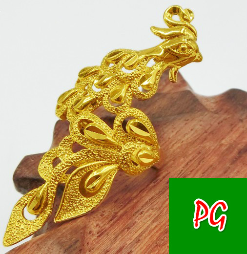 越南沙金欧币不掉色镀18K金欧美夸张凤凰孔雀戒指环结婚庆首饰