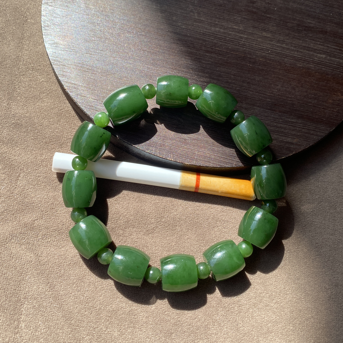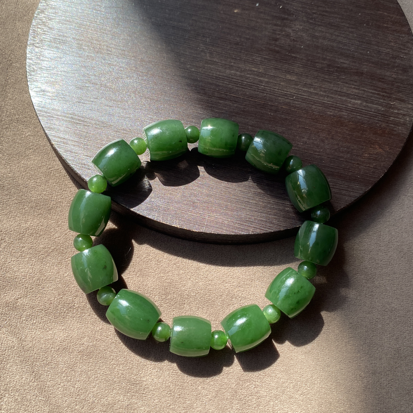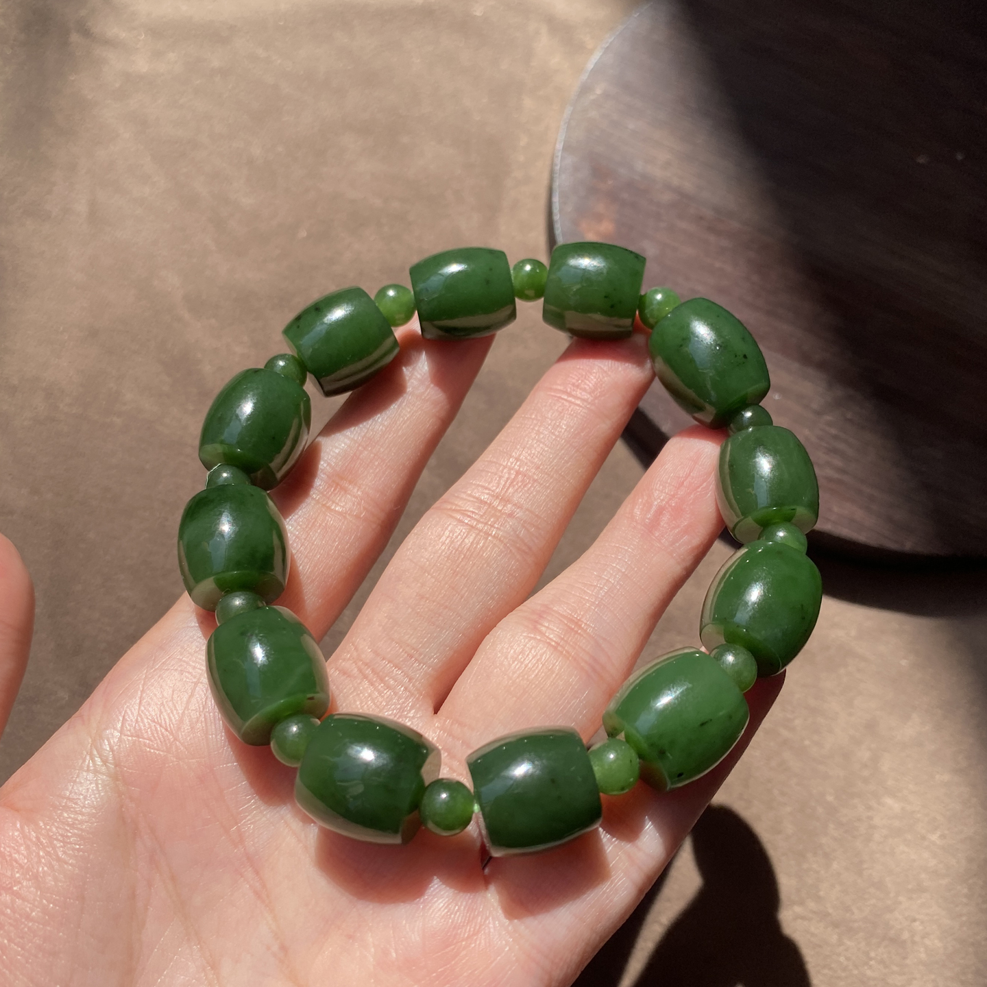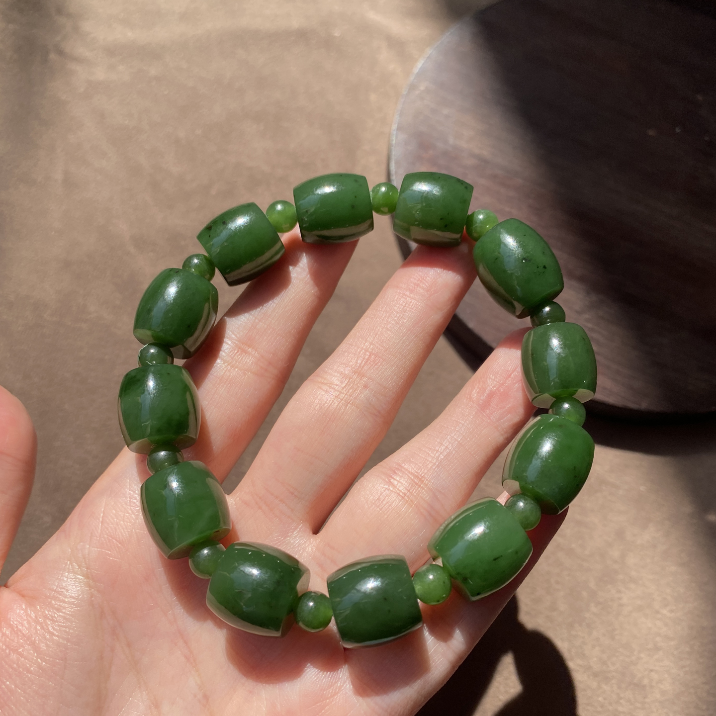 火爆了方言和田玉俄罗斯绿色名品油润细腻阳绿碧玉13mm鼓珠手串A2