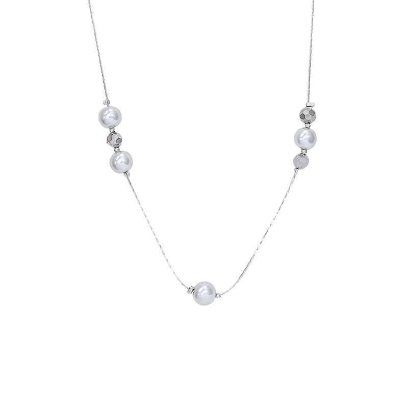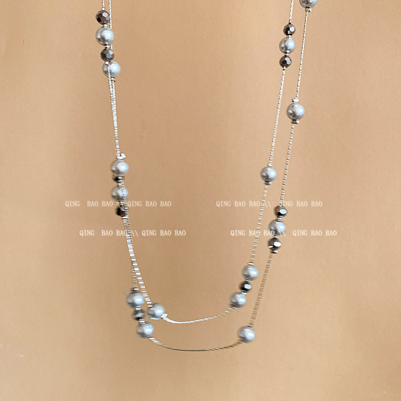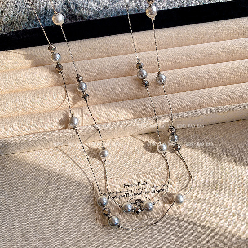 高级感双层满天星灰色珍珠项链女轻奢叠戴颈链秋冬长款毛衣链配饰