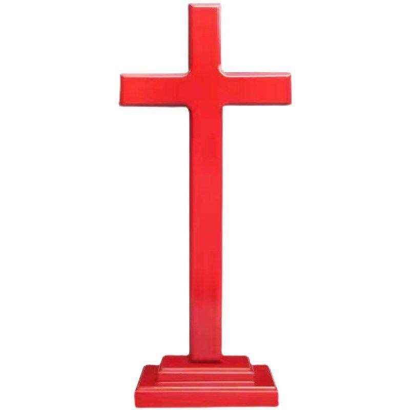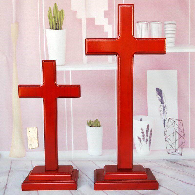 鲜红色实木十字架摆件家居用品木质结婚礼品桌面客厅摆件 送礼物