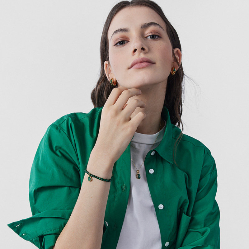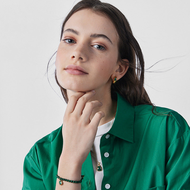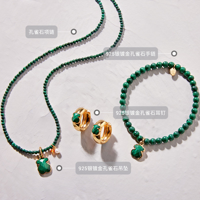 TOUS桃丝熊925银孔雀石绿色系耳坠耳环女女生节日礼物