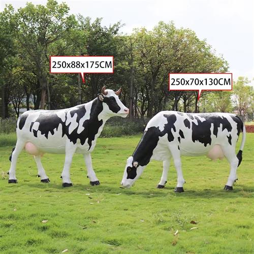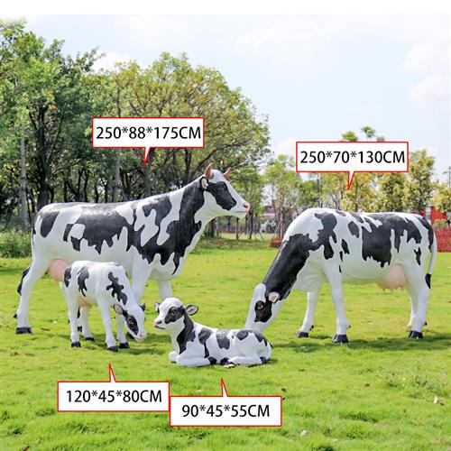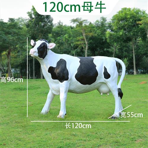 户外园林农场牧场仿真奶牛雕塑草坪西门塔尔玻璃钢黄水牛模型摆件