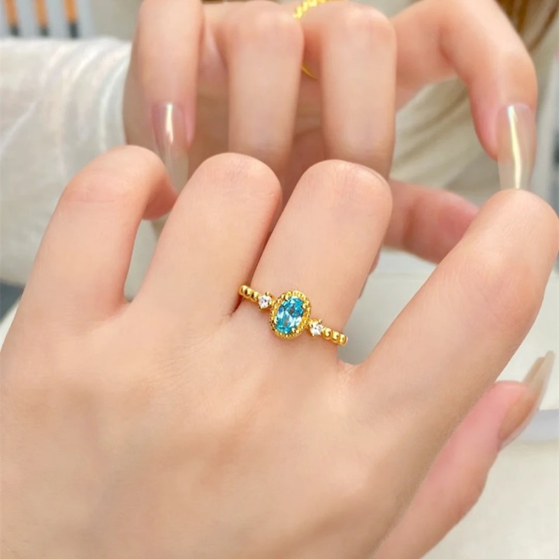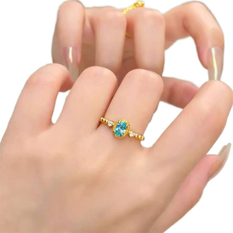 新款鸽子蛋蔚蓝色戒指女轻奢高级感锆石中古风小众开口指环