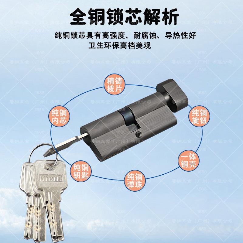全铜大葫芦锁芯枪灰色70单开锁心大门防盗门锁具偏心卧室房门