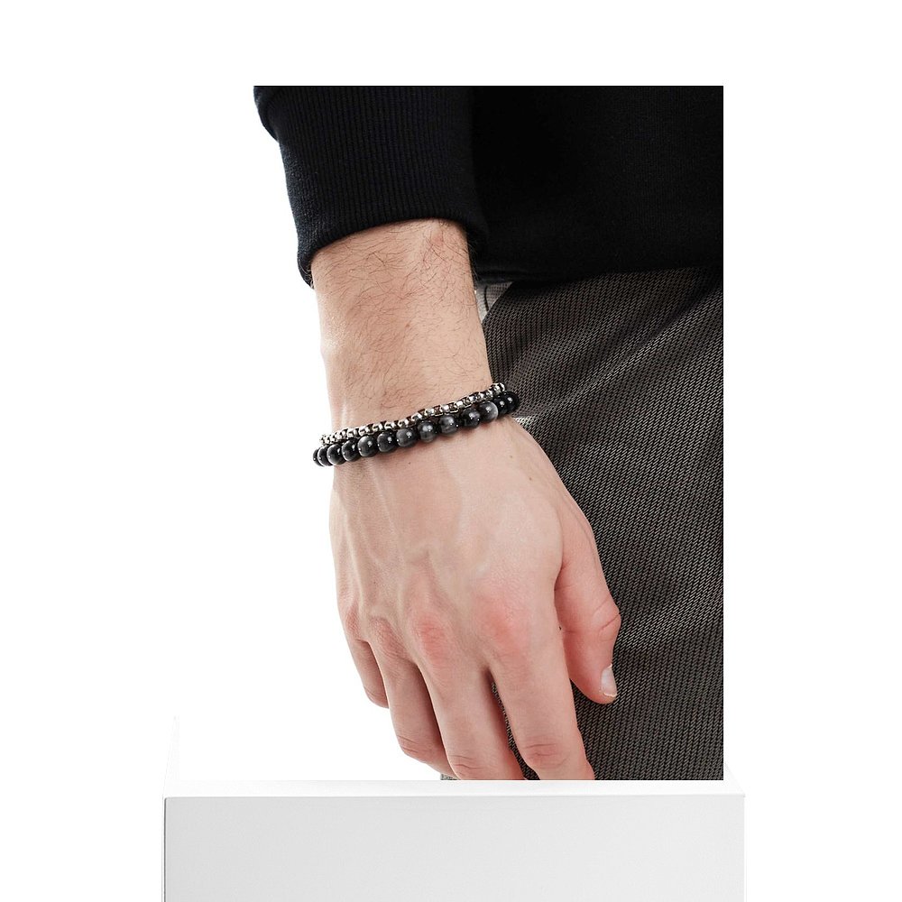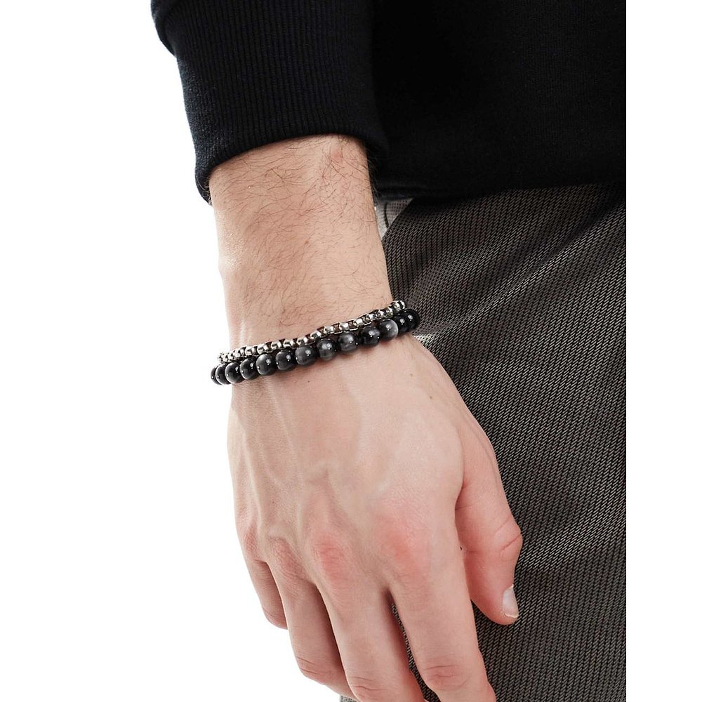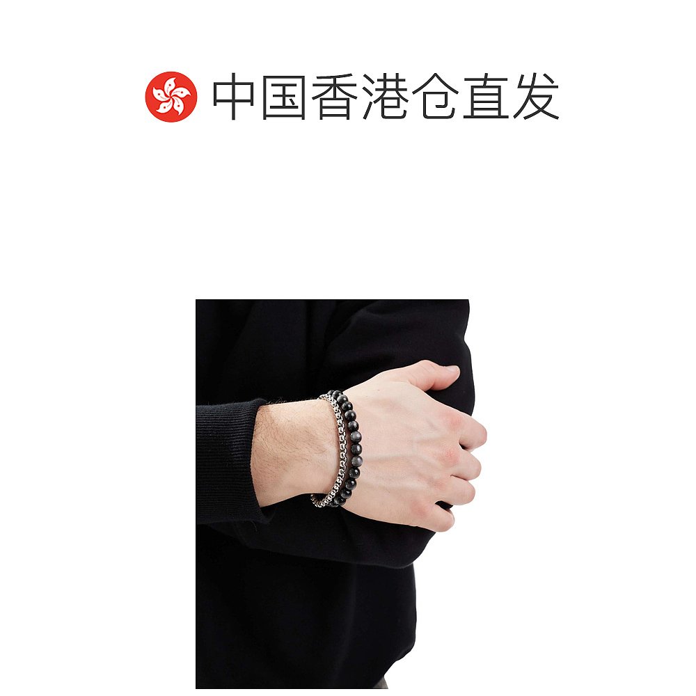 1h可退 香港直邮ASOS 男士 tones 设计链条珠饰手链(2件套)(黑色)